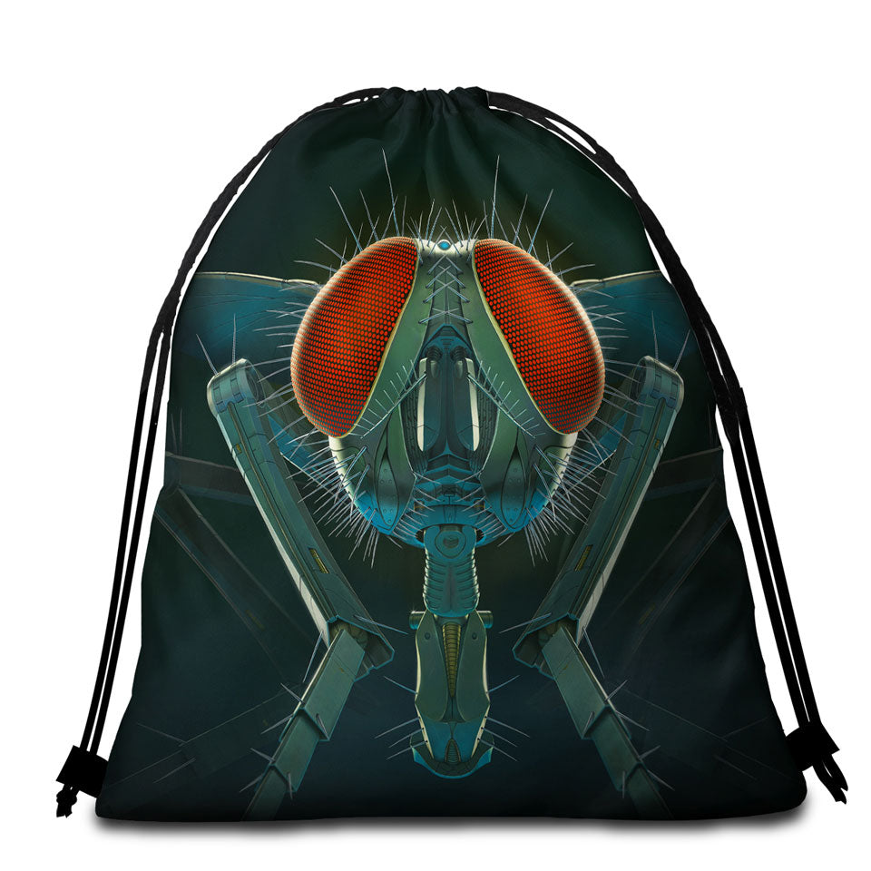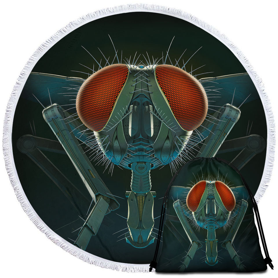 Cool Science Fiction Art Metal Fly Round Beach Towel