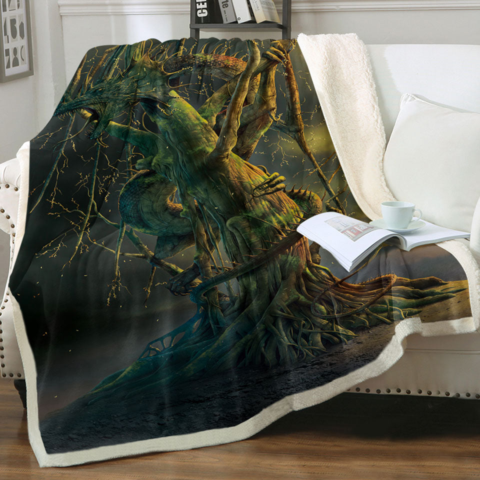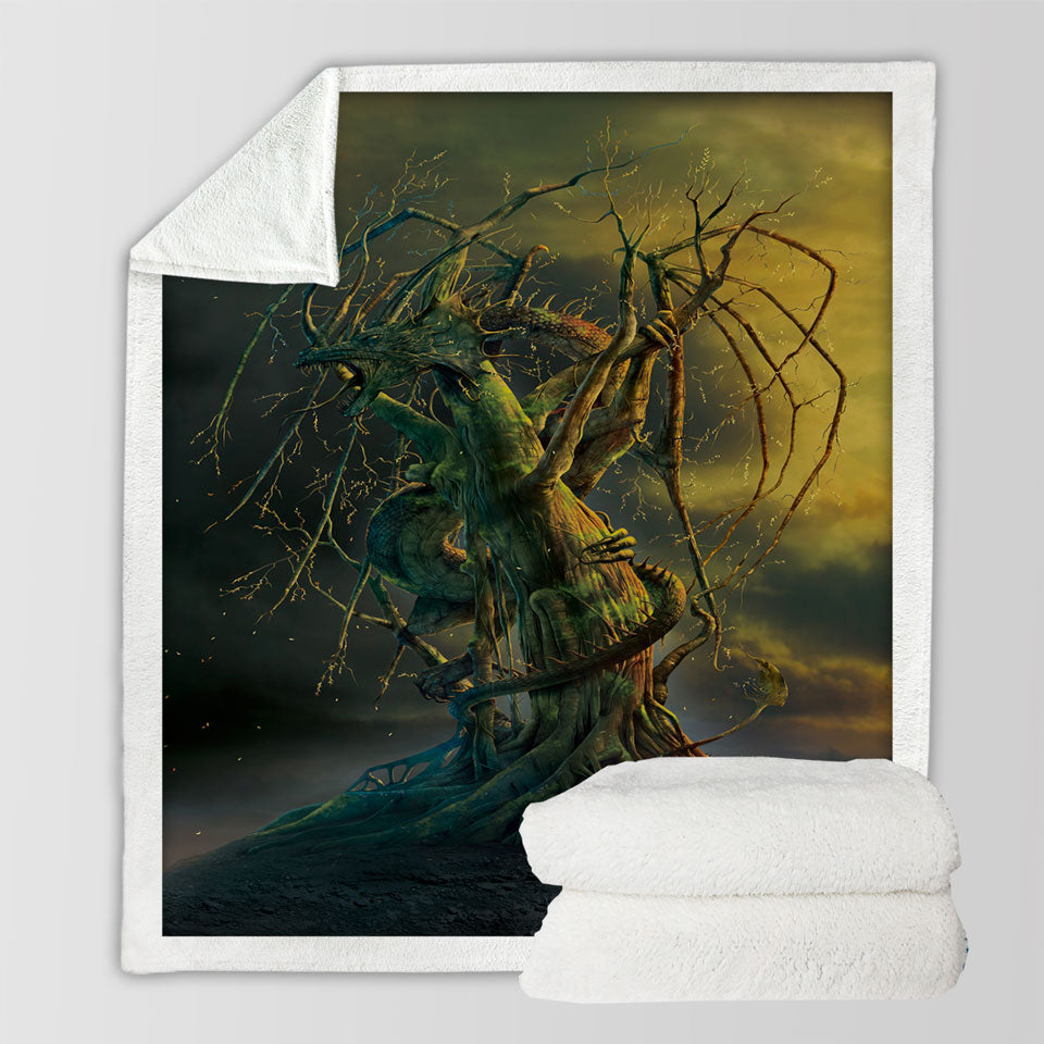 Cool Tree Dragon Art Fantasy Throw Blanket