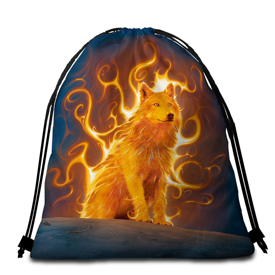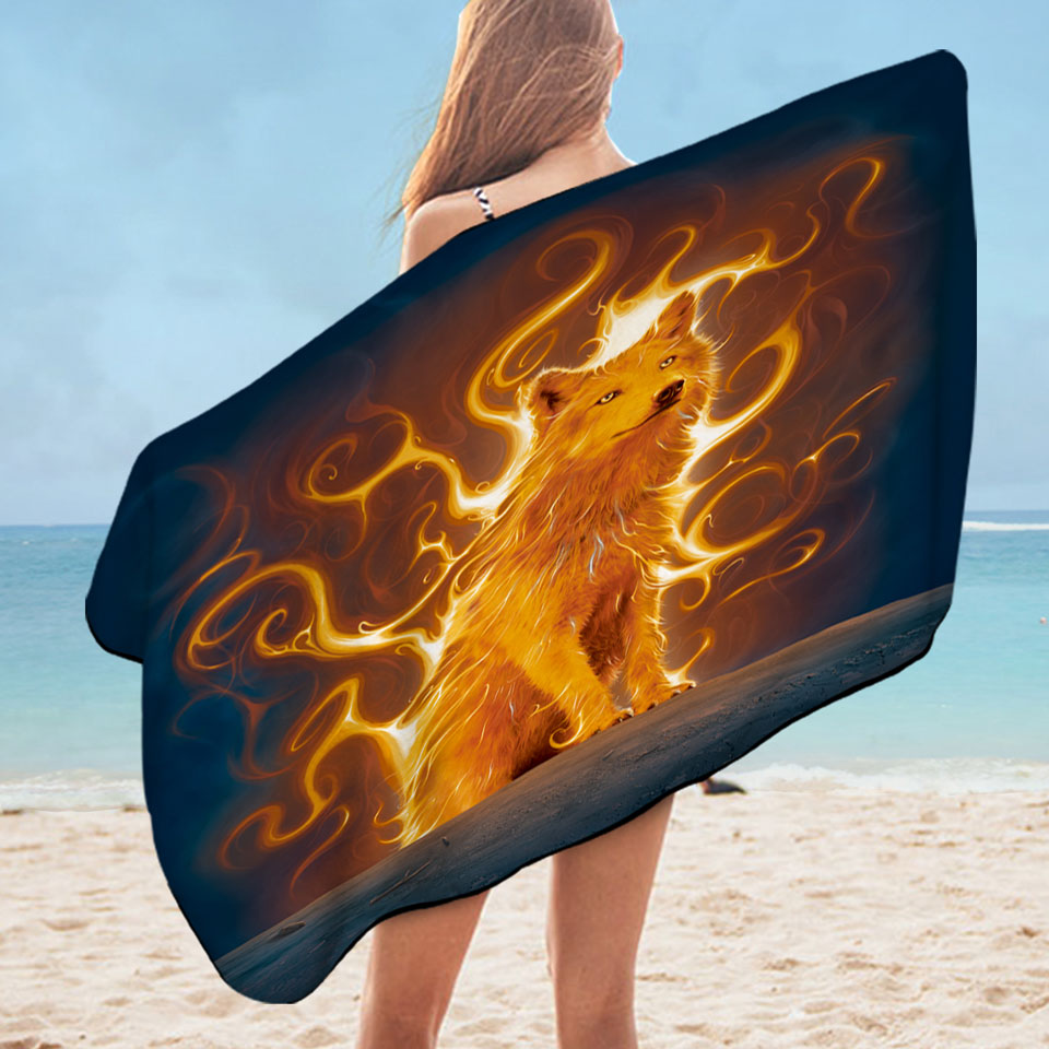 Fantasy Animal Art Phoenix Wolf Microfiber Beach Towel