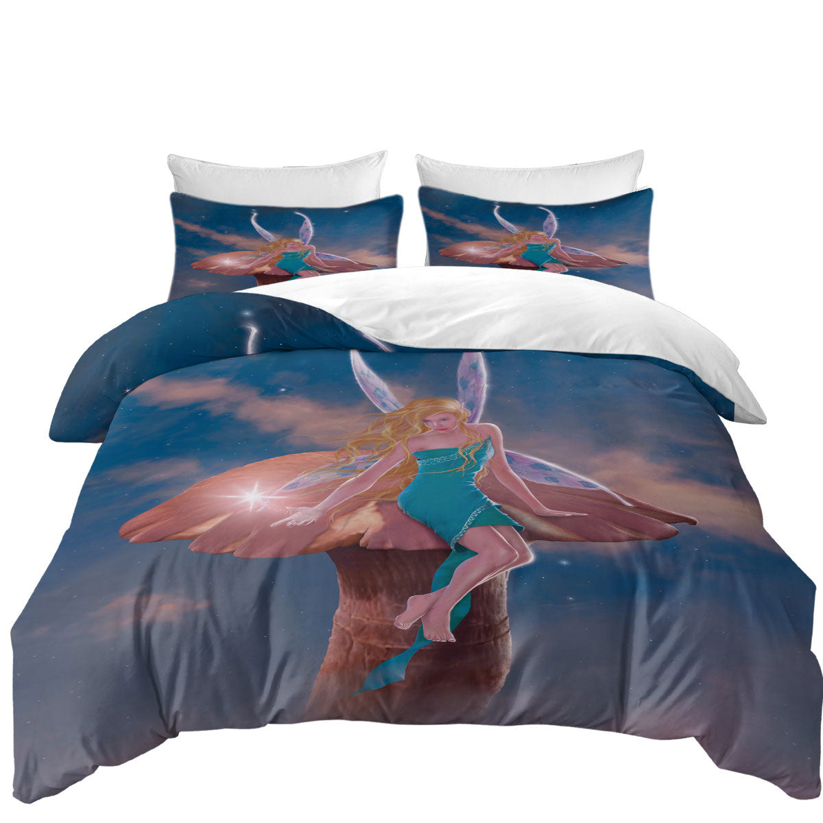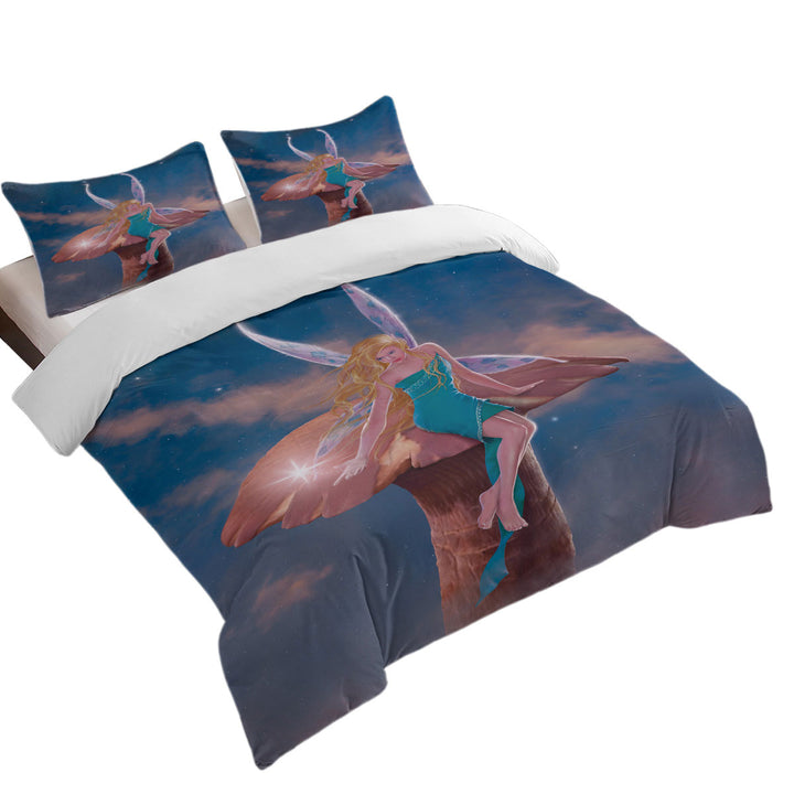 Fantasy Art Big Mushroom and Little Fairy Duvet Cover