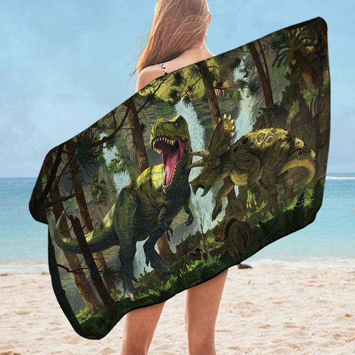 Protection Fight Cool Dinosaurs Art the Dinosaurs Forest Microfiber Beach Towel