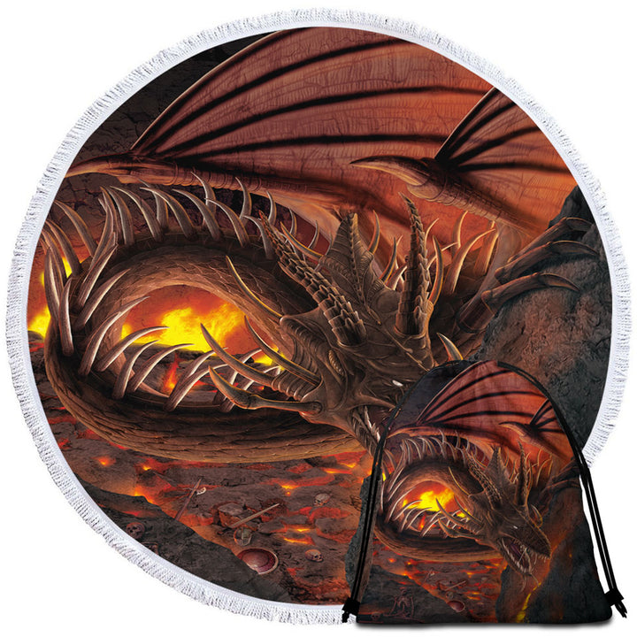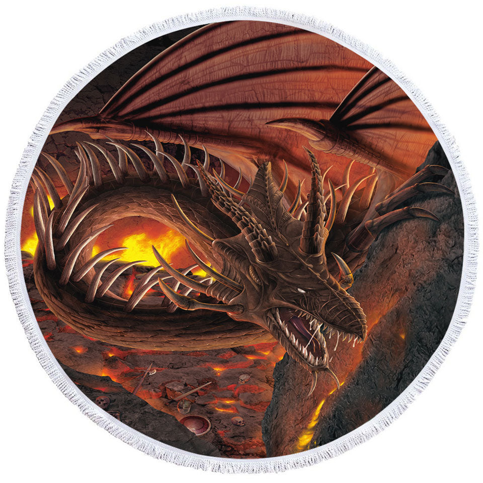 Scary Dragon Hellfire Dragon Round Beach Towel