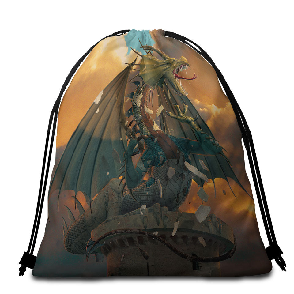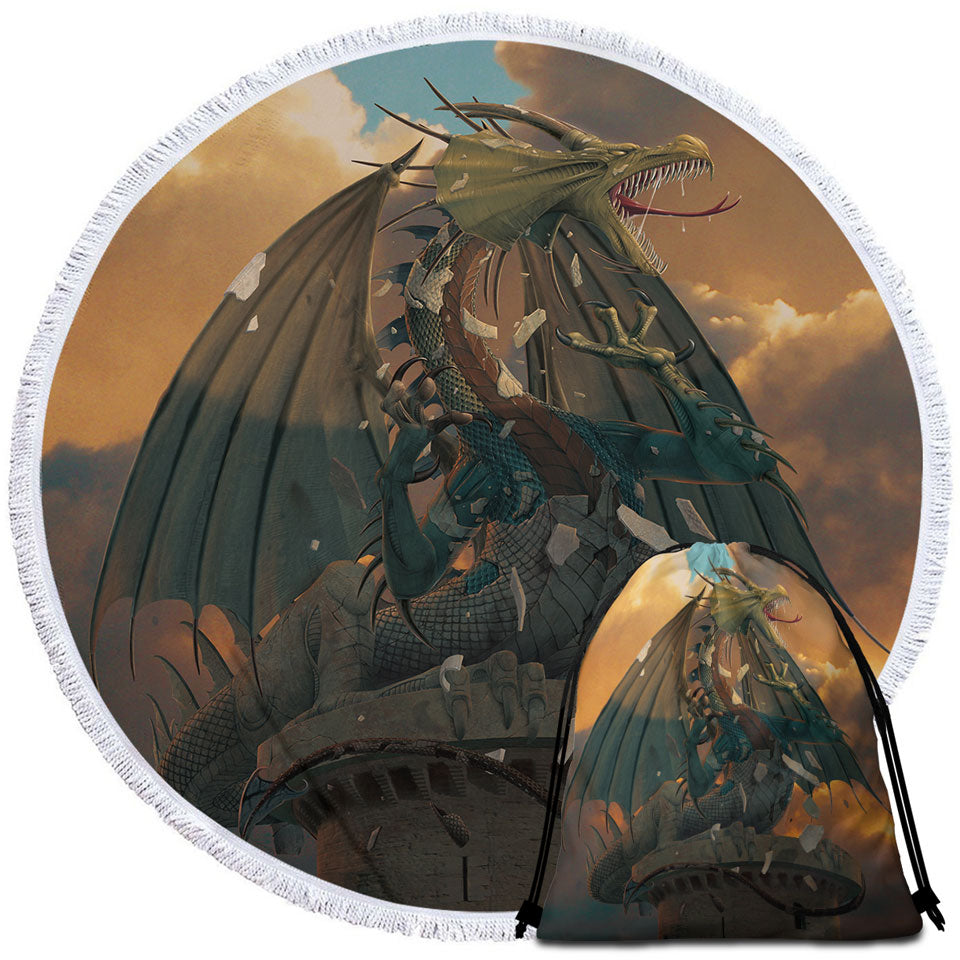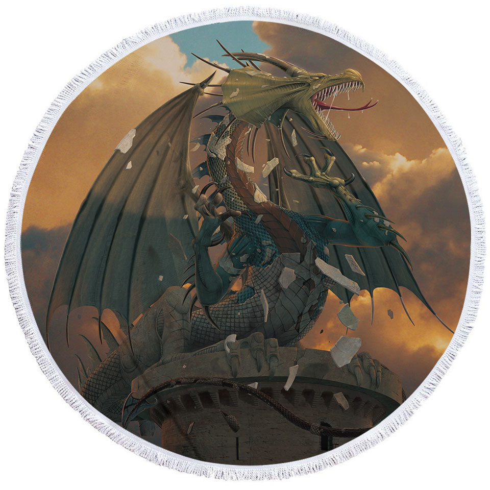 The Awakening Cool Fantasy Dragon Round Beach Towel