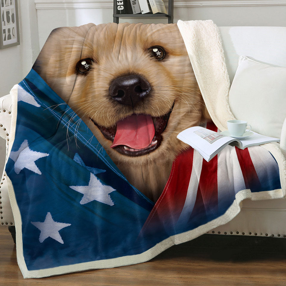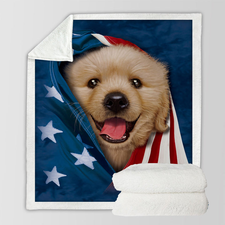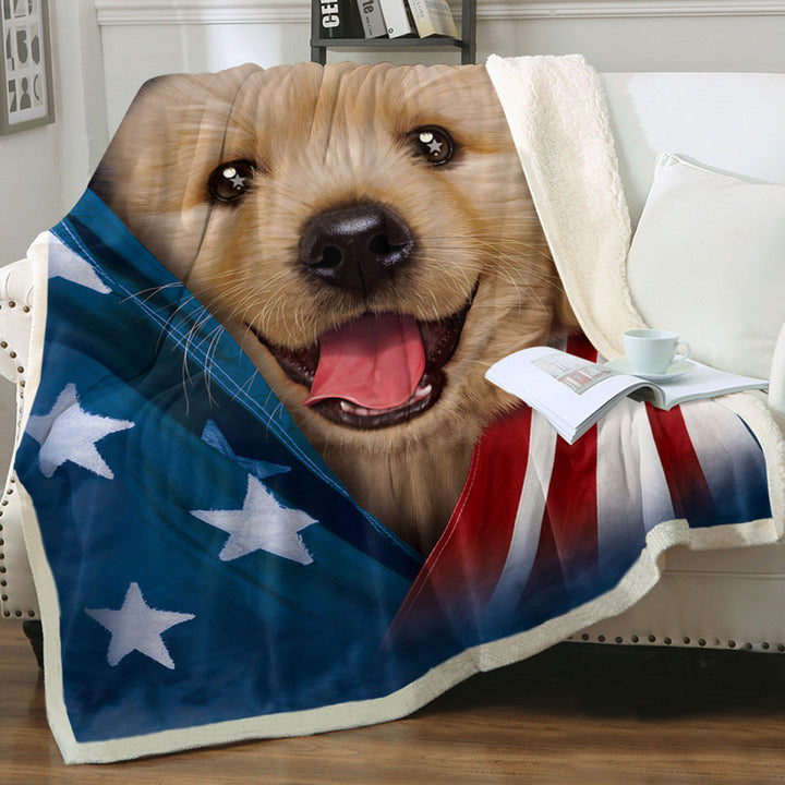 USA Flag Cute Golden Labrador Puppy Throw Blanket