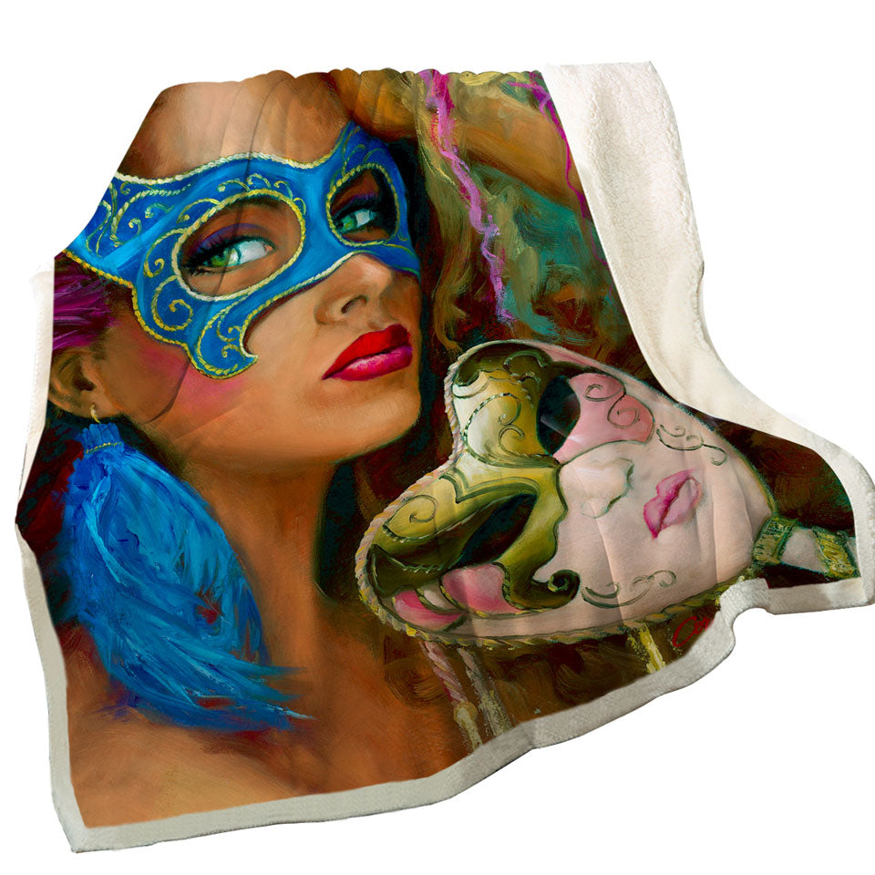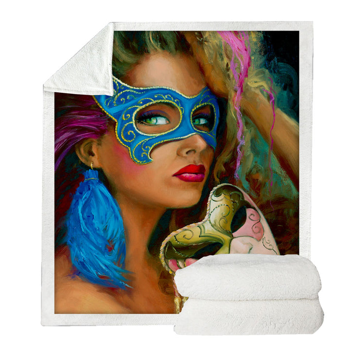 Blue Mask Beautiful Woman Drawing Throw Blanket