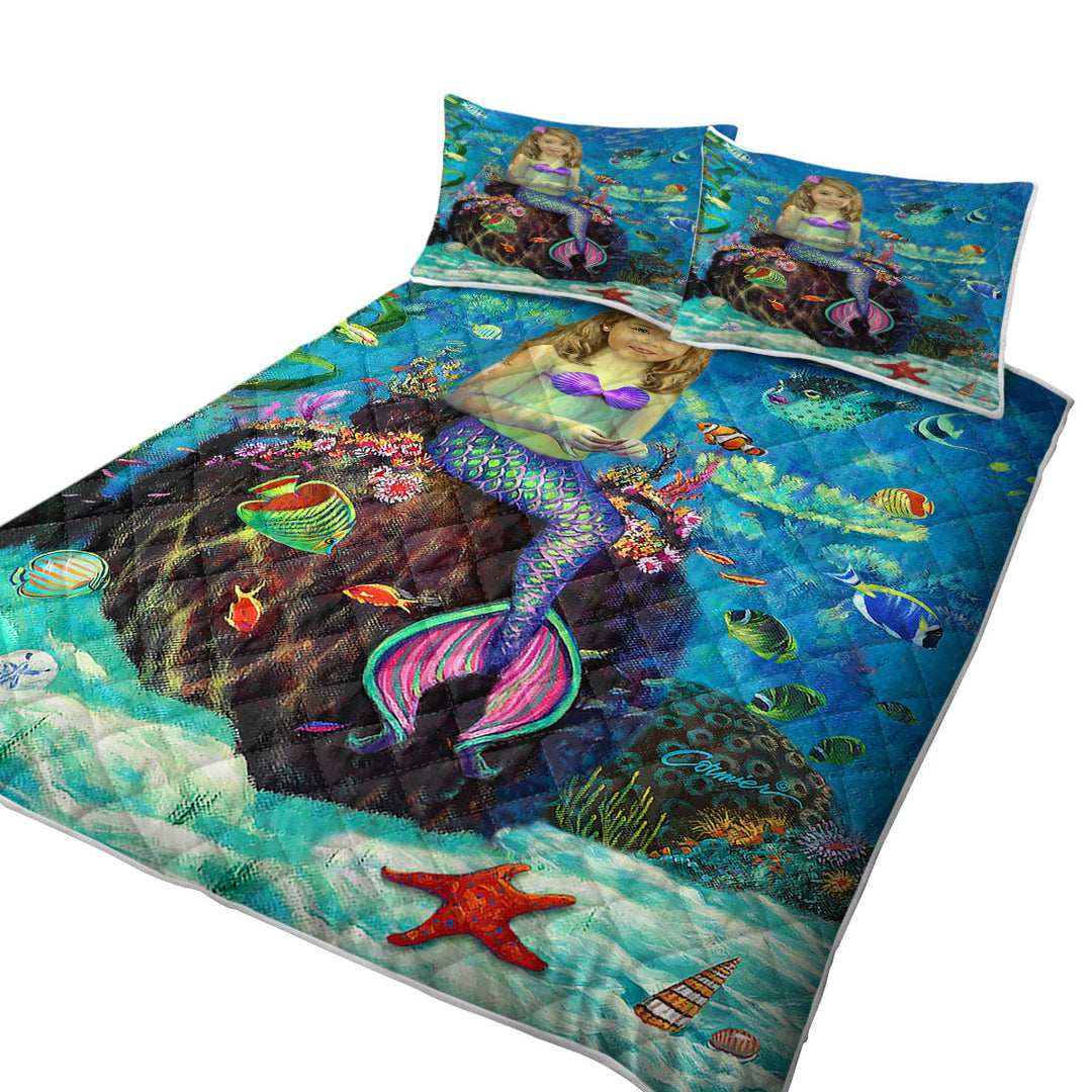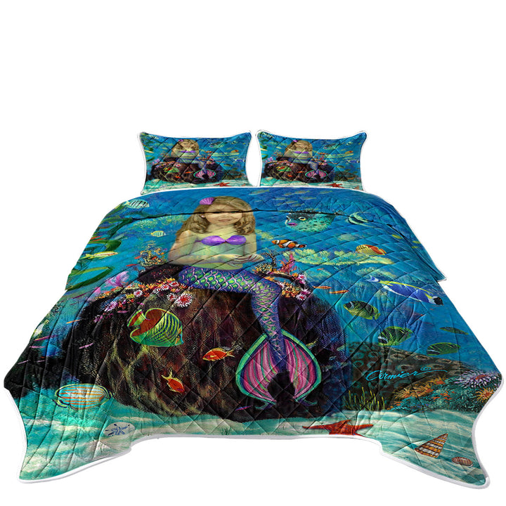 Underwater Art Fish and Girl Mermaid on Urn Quilt