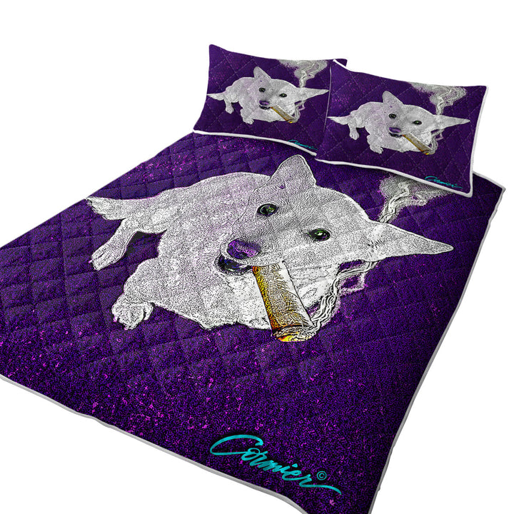White Purple Artistic Drawing Smoking Dog Summer Quilt