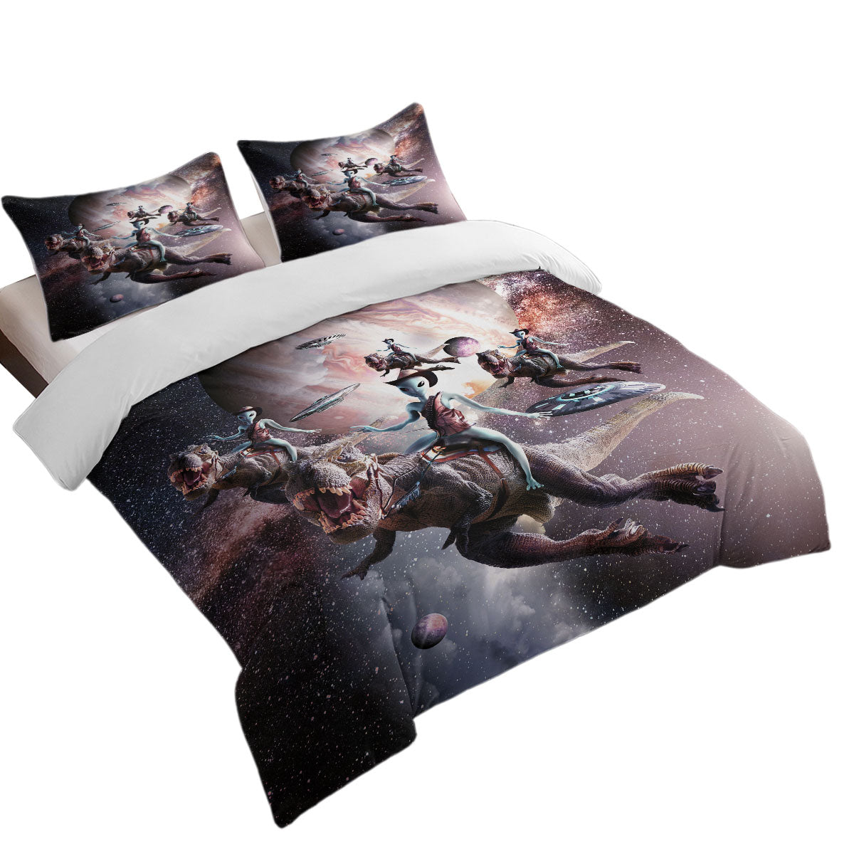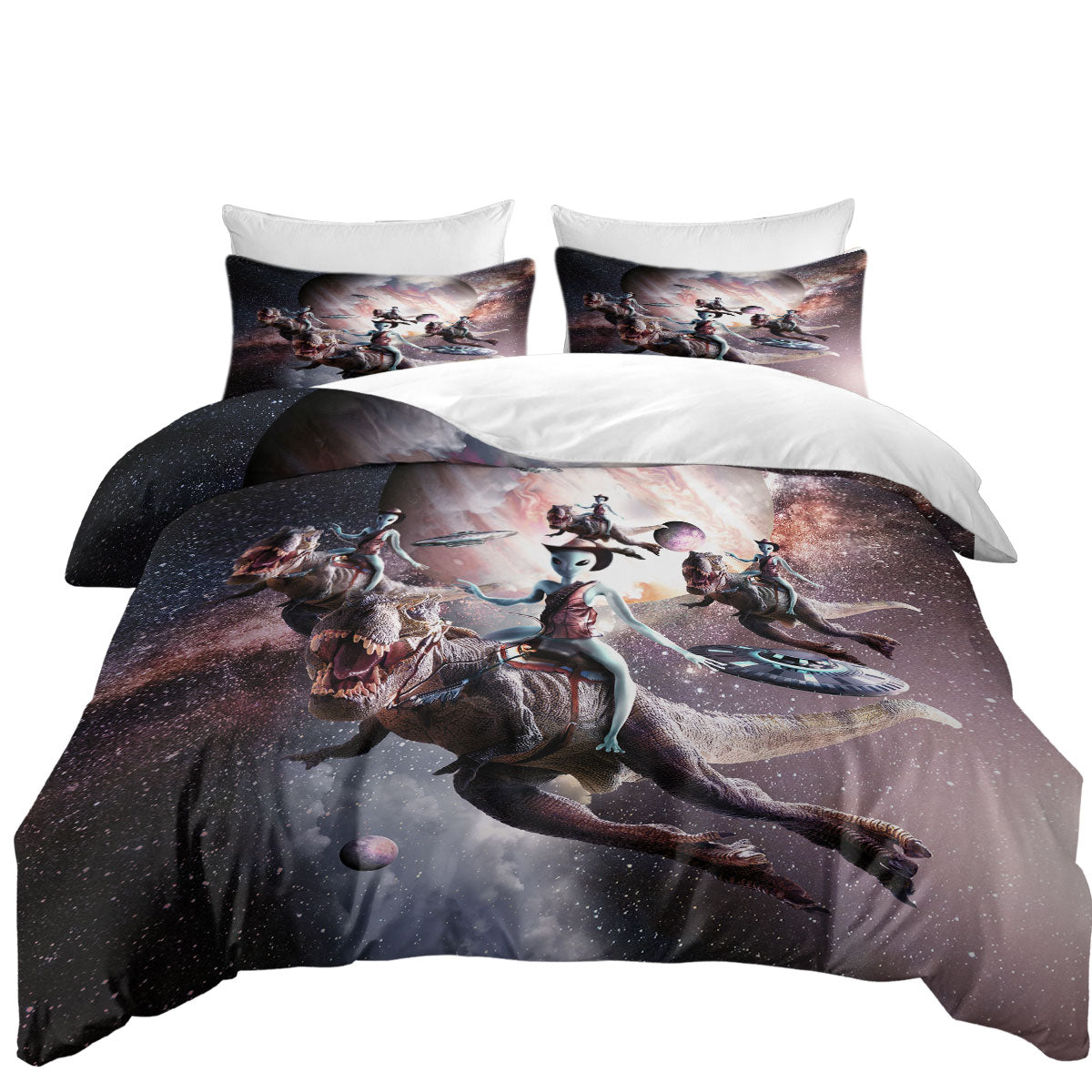 Awesome Cool Art Alien Riding Dinosaur in Space Duvet Cover