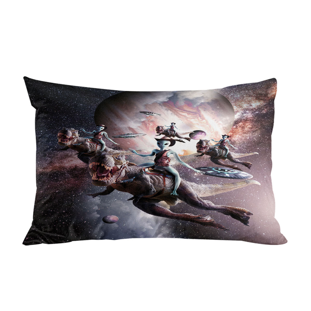 Pillowcases with Awesome Cool Art Alien Riding Dinosaur in Space