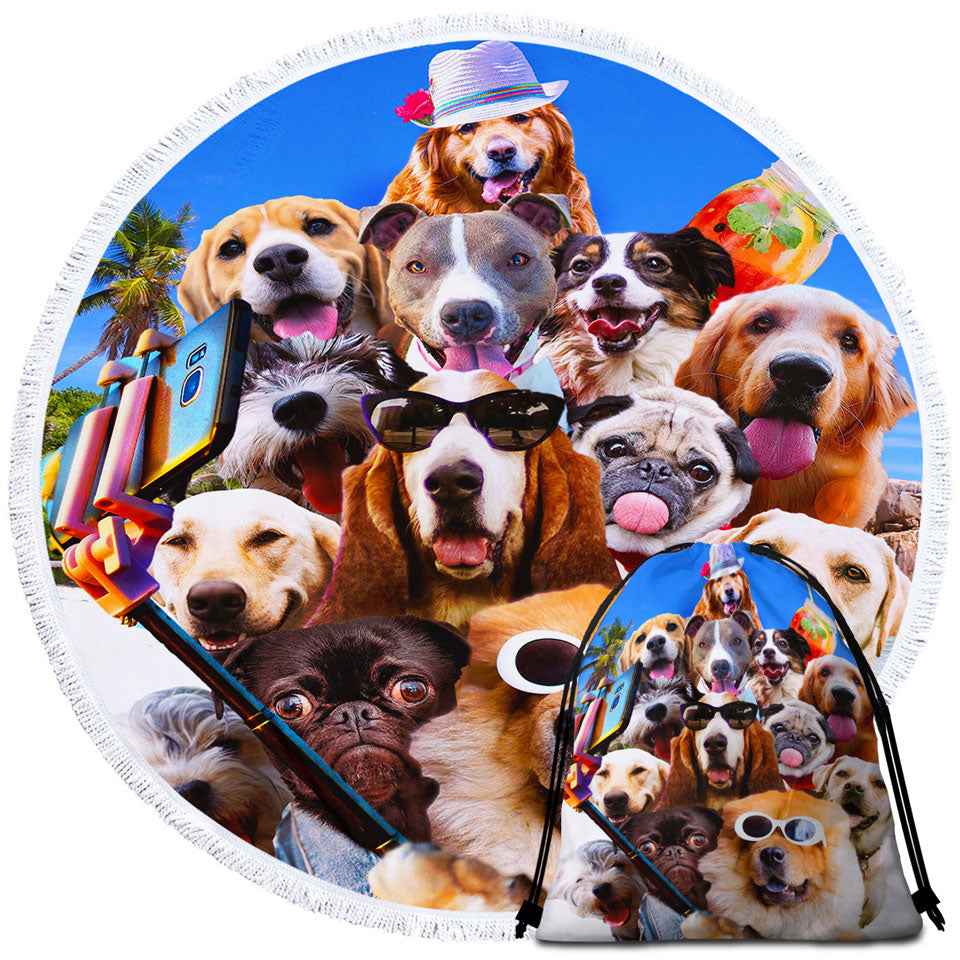 Dog Round Beach Towel Awesome Selfie Funny Dogs with Sunglasses on the Beach