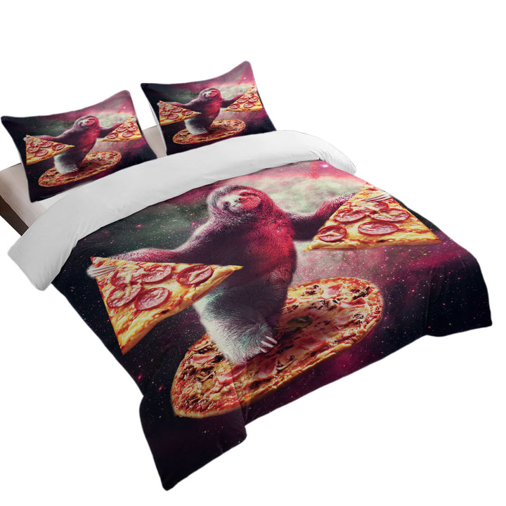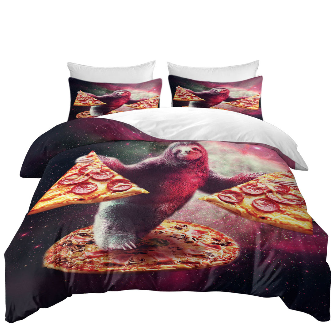 Cool Crazy Art Funny Space Sloth with Pizza Duvet Cover