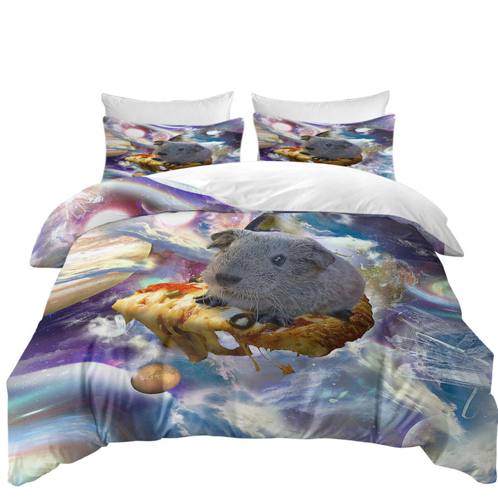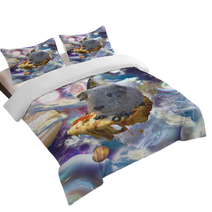 Cool Crazy Space Cute Guinea Pig on a Pizza Duvet Cover