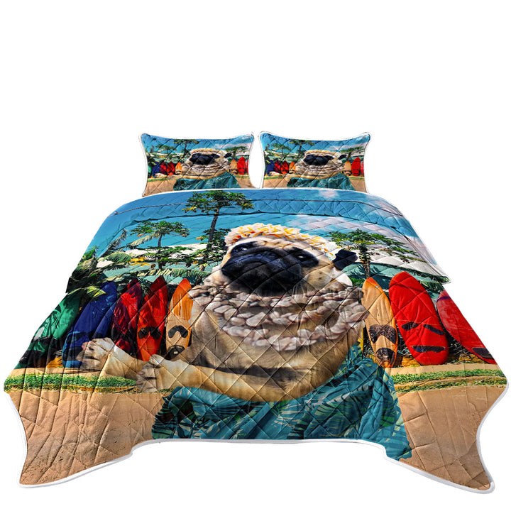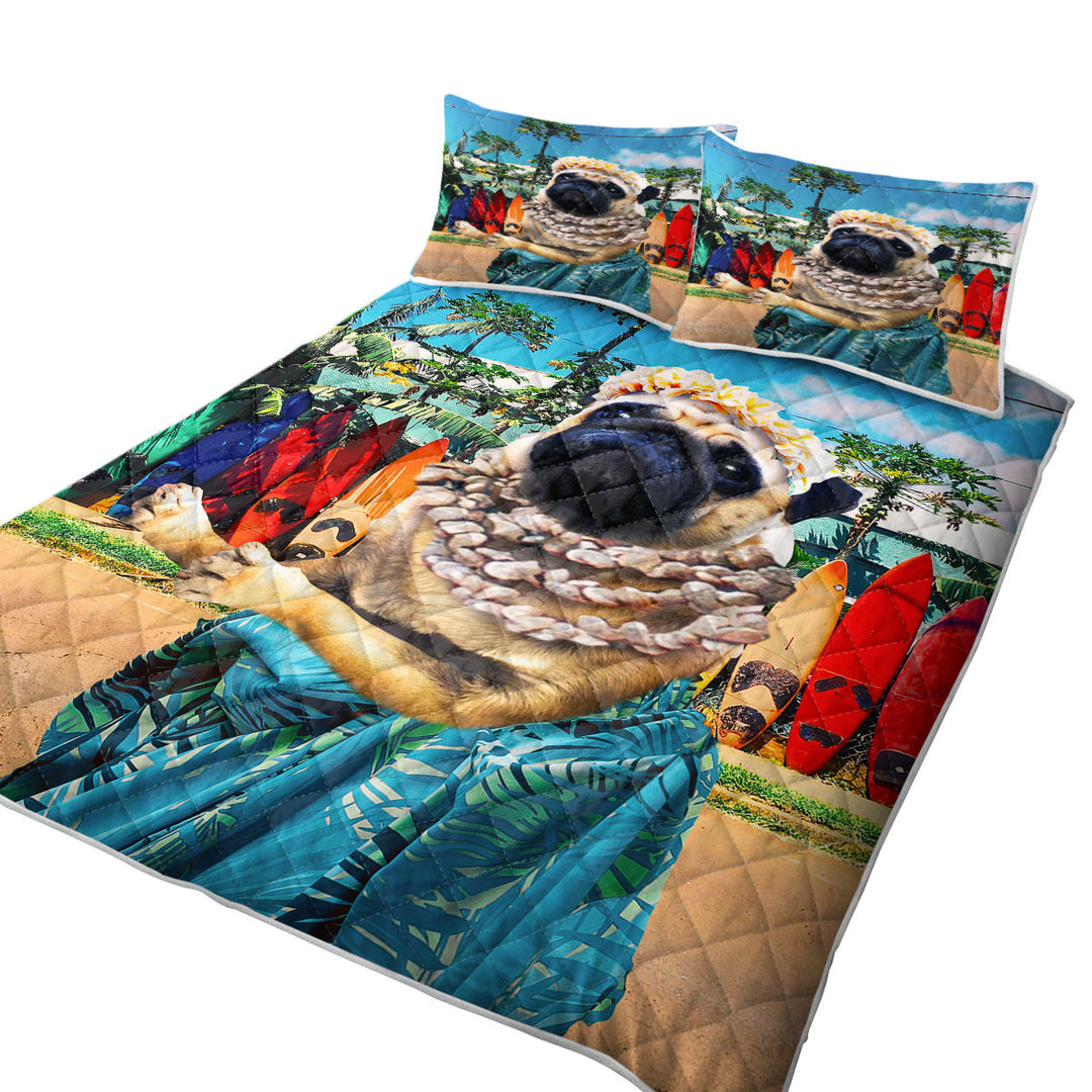 Funny and Cute Aloha Girl Pug Dog in Hawaii Quilt