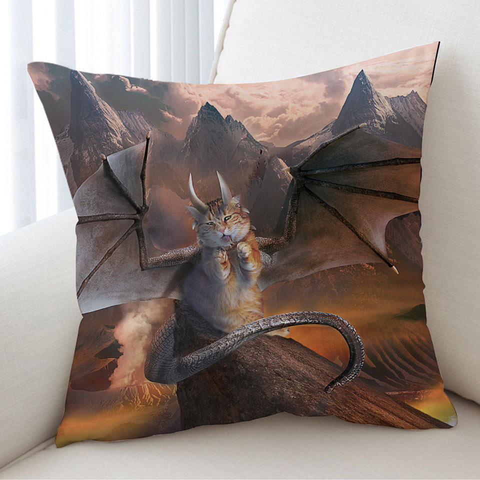 Funny Fantasy Art Evil Dragon Kitty Cat Throw Pillow