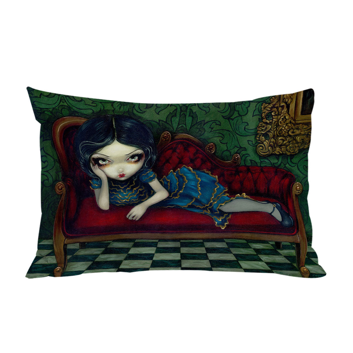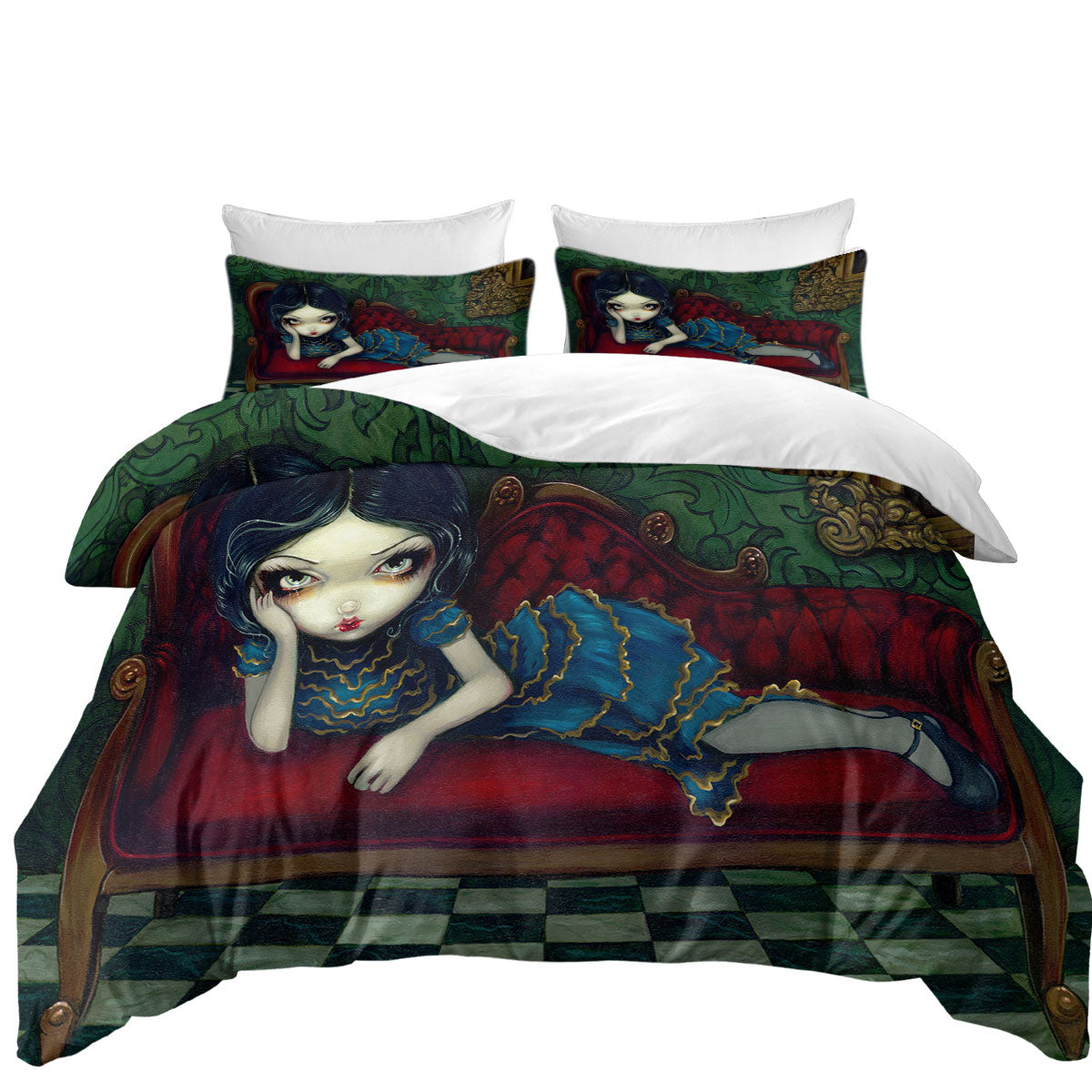Beautiful Gothic Girl Reclining on the Scarlet Sofa Duvet Cover