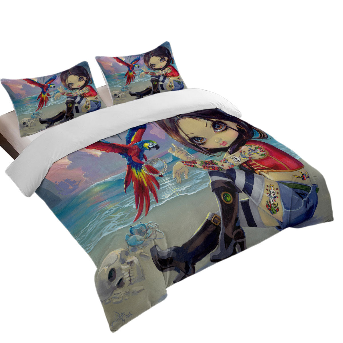 Bootstrap Betsy Macaws Parrot and Girl Pirate Duvet Cover