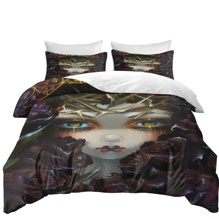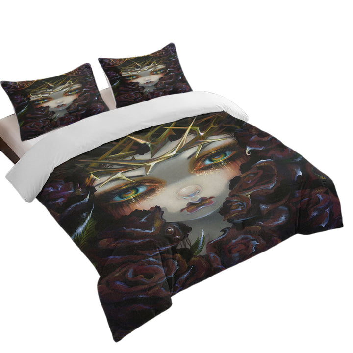 Gothic Art the Language of Flowers Black Roses Girl Duvet Cover