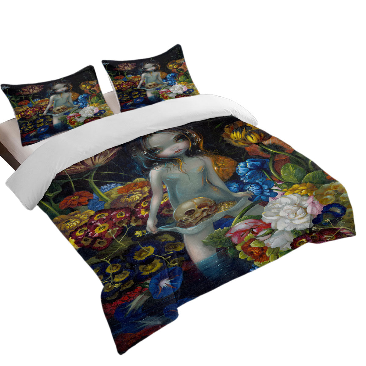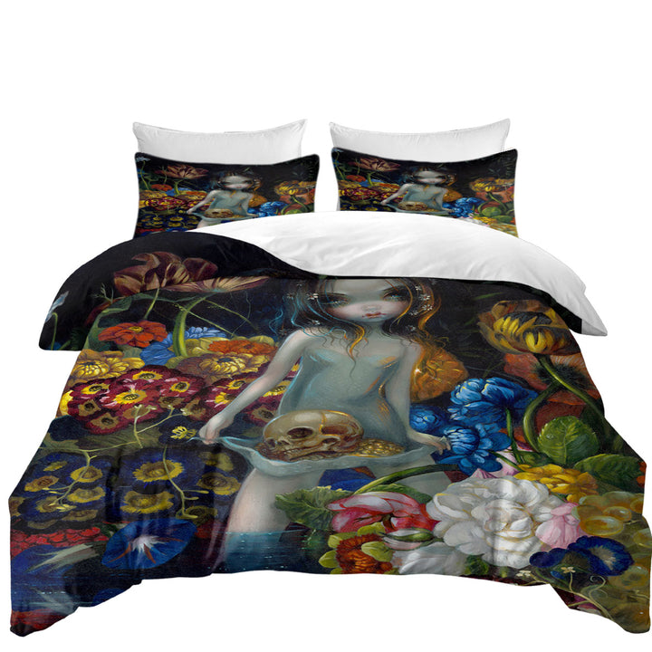 Gothic Art The Offering Forest Nymph Girl with Skull Duvet Cover