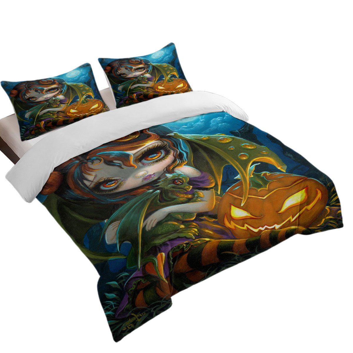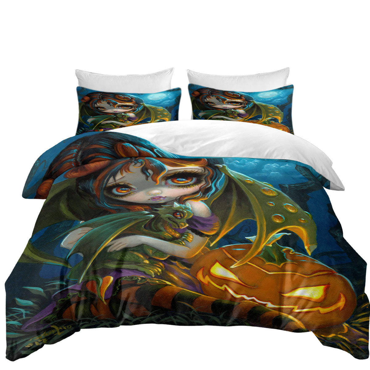 Halloween Dragonling Scary Pumpkin and Dragon Fairy Duvet Cover