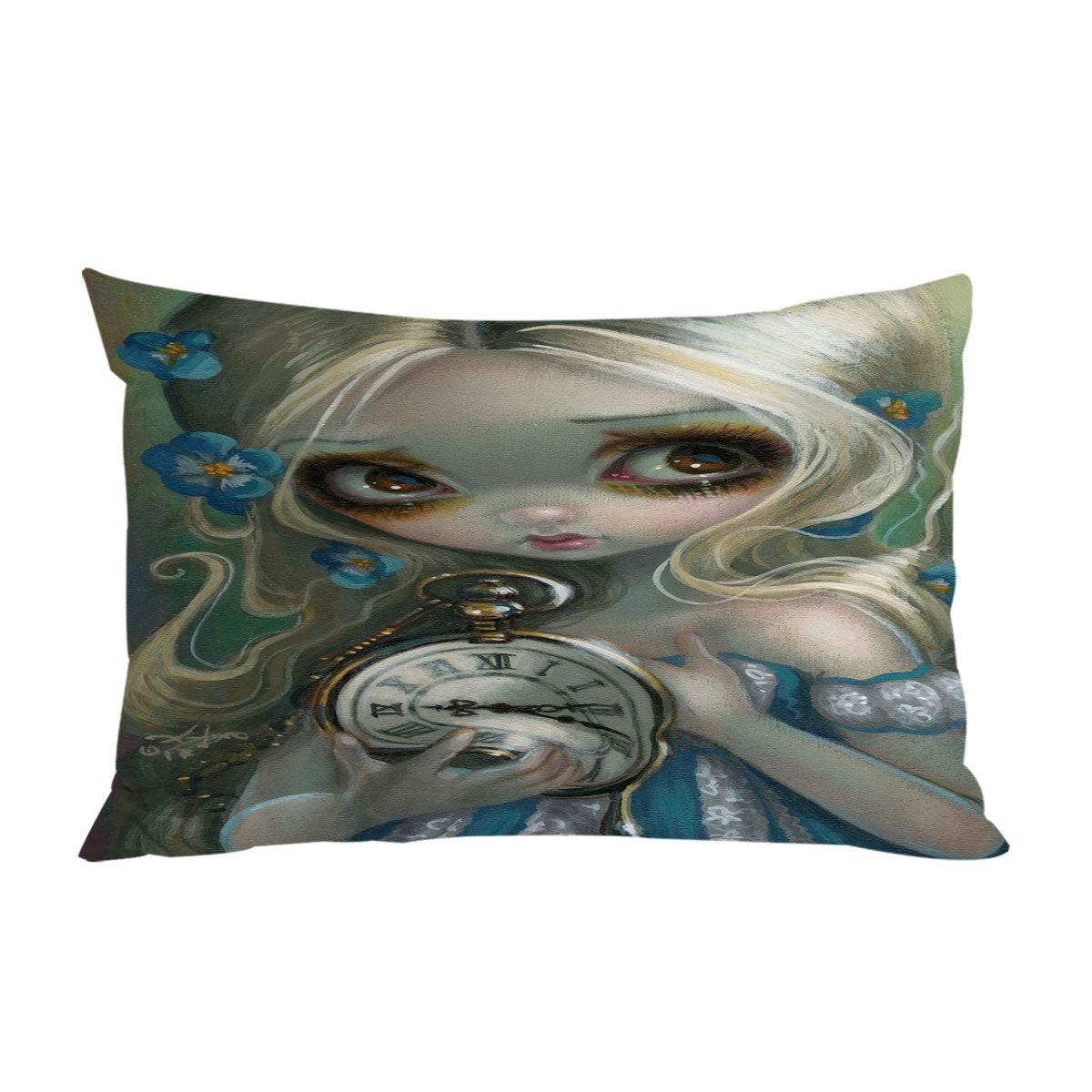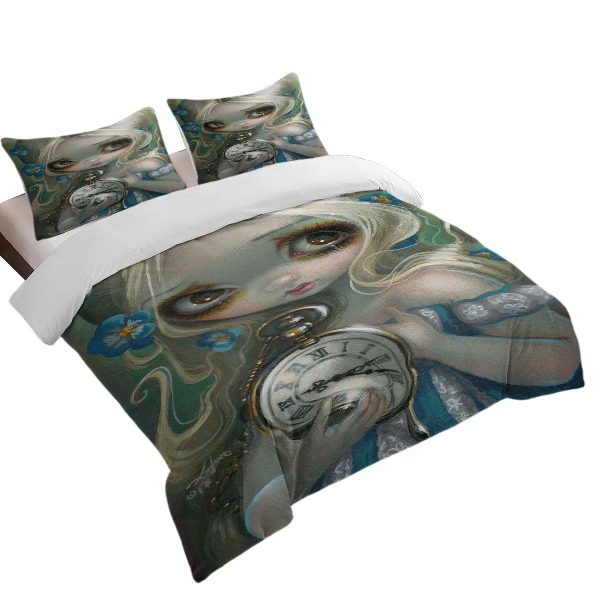 Kids Fantasy Art Keeping Up Alice Holding a Clock Duvet Cover