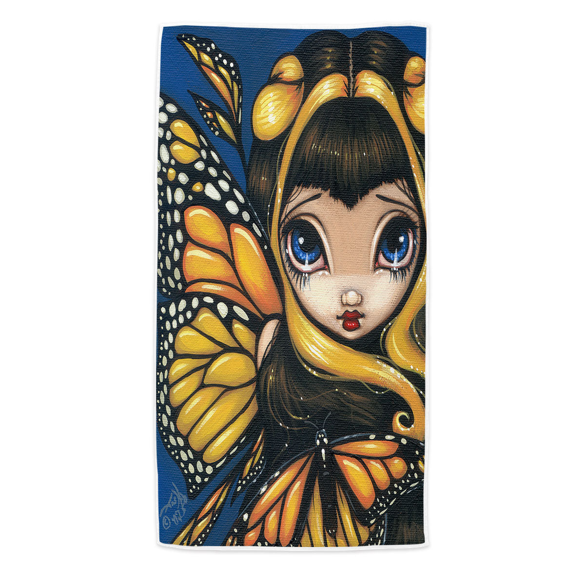 Big Eyed Cute Fairy Golden Butterflies Microfiber Beach Towel