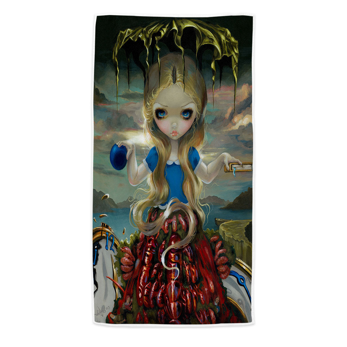 Painted Fantasy Alice in a Dali Dress Microfiber Beach Towel