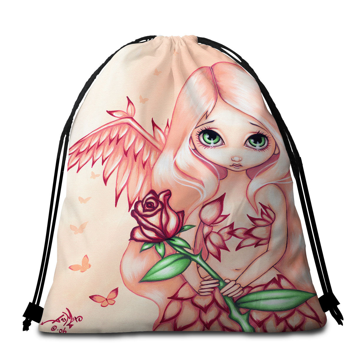 Pale Rose A Flower Fairy with Angel Wings Microfiber Beach Towel