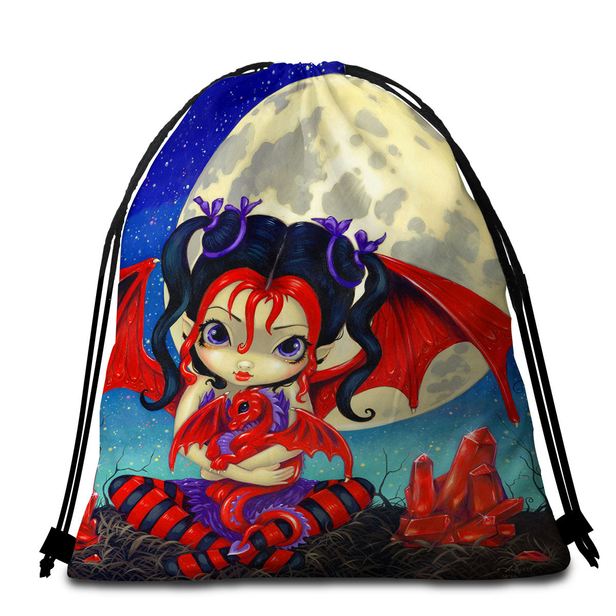 Ruby Moon Cute Fairy and Her Baby Red Dragon Microfiber Beach Towel