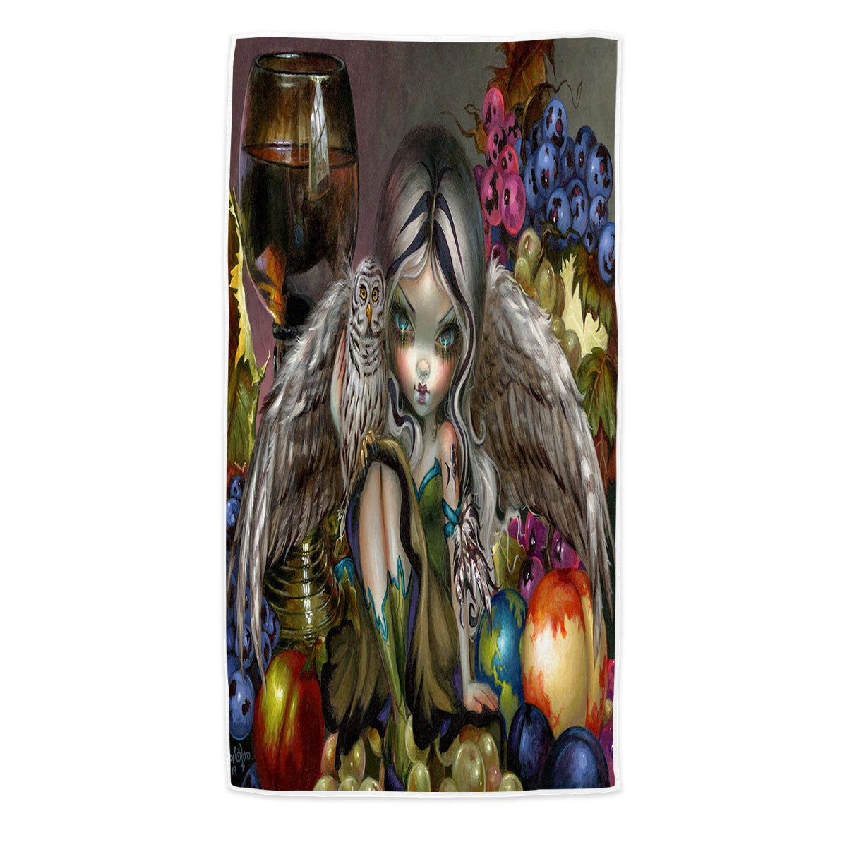 Silent Wisdom Owl Angel Wine and Fruits Microfiber Beach Towel