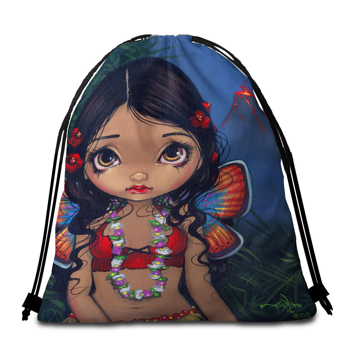 Winged Tiki Hula Girl Hawaiian Volcano Fairy Microfiber Beach Towel