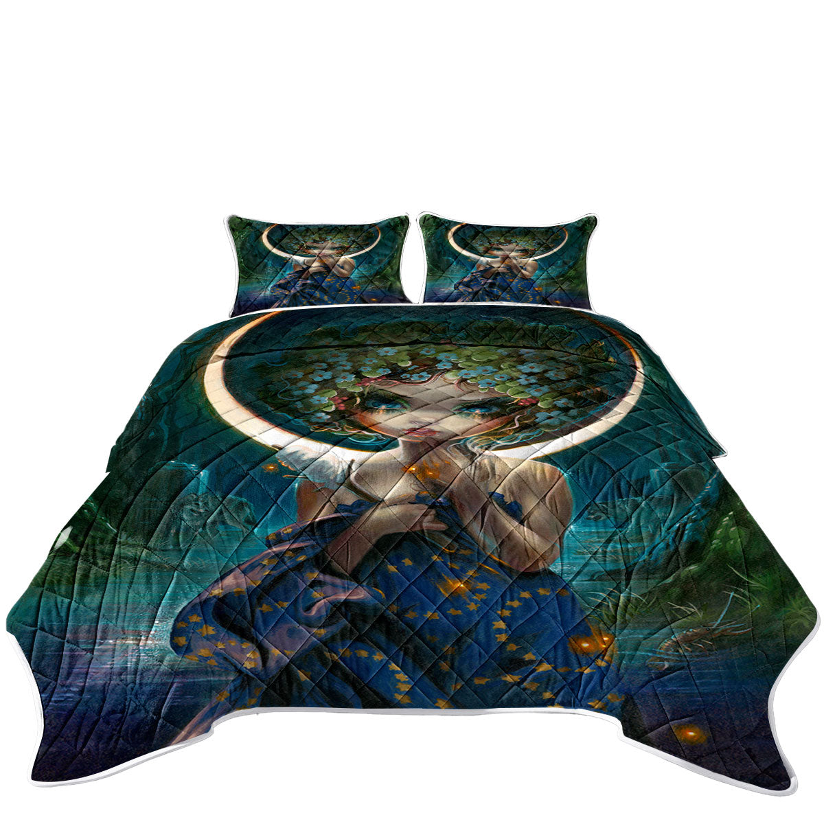 The Moon Goddess Forest Wolves and Beautiful Maiden Quilt