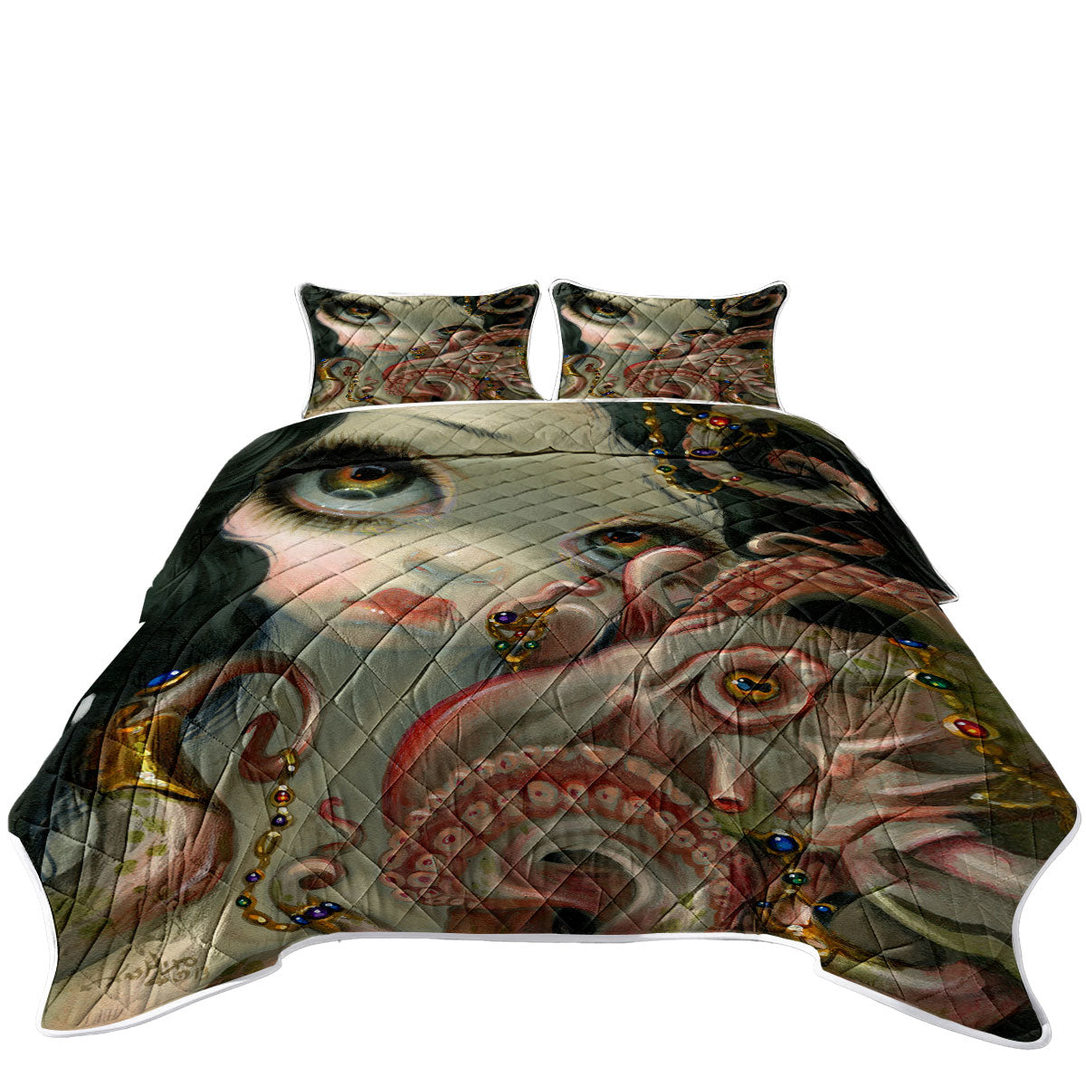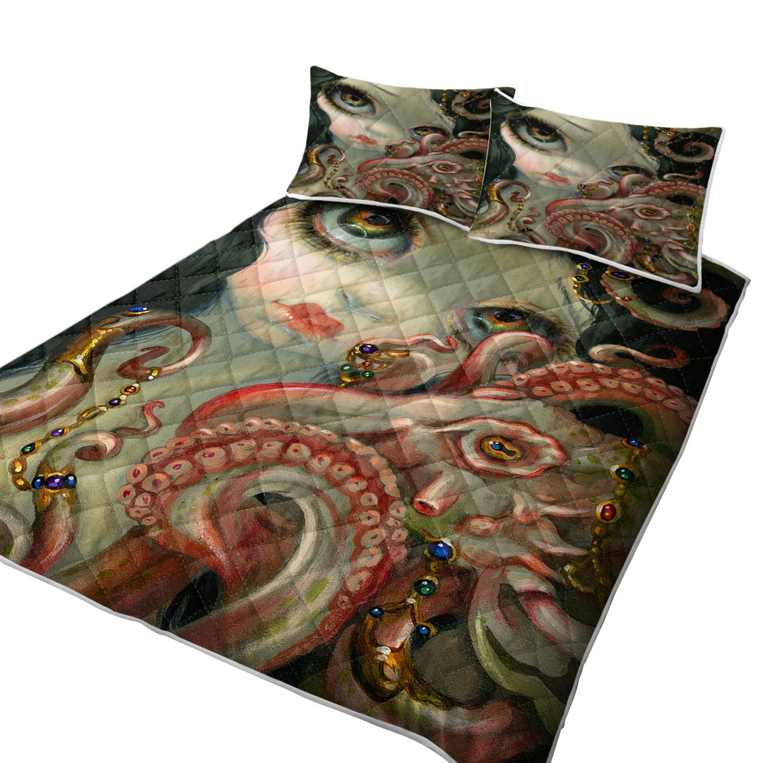 Underwater Fantasy Jeweled Octopus and Mermaid Quilt