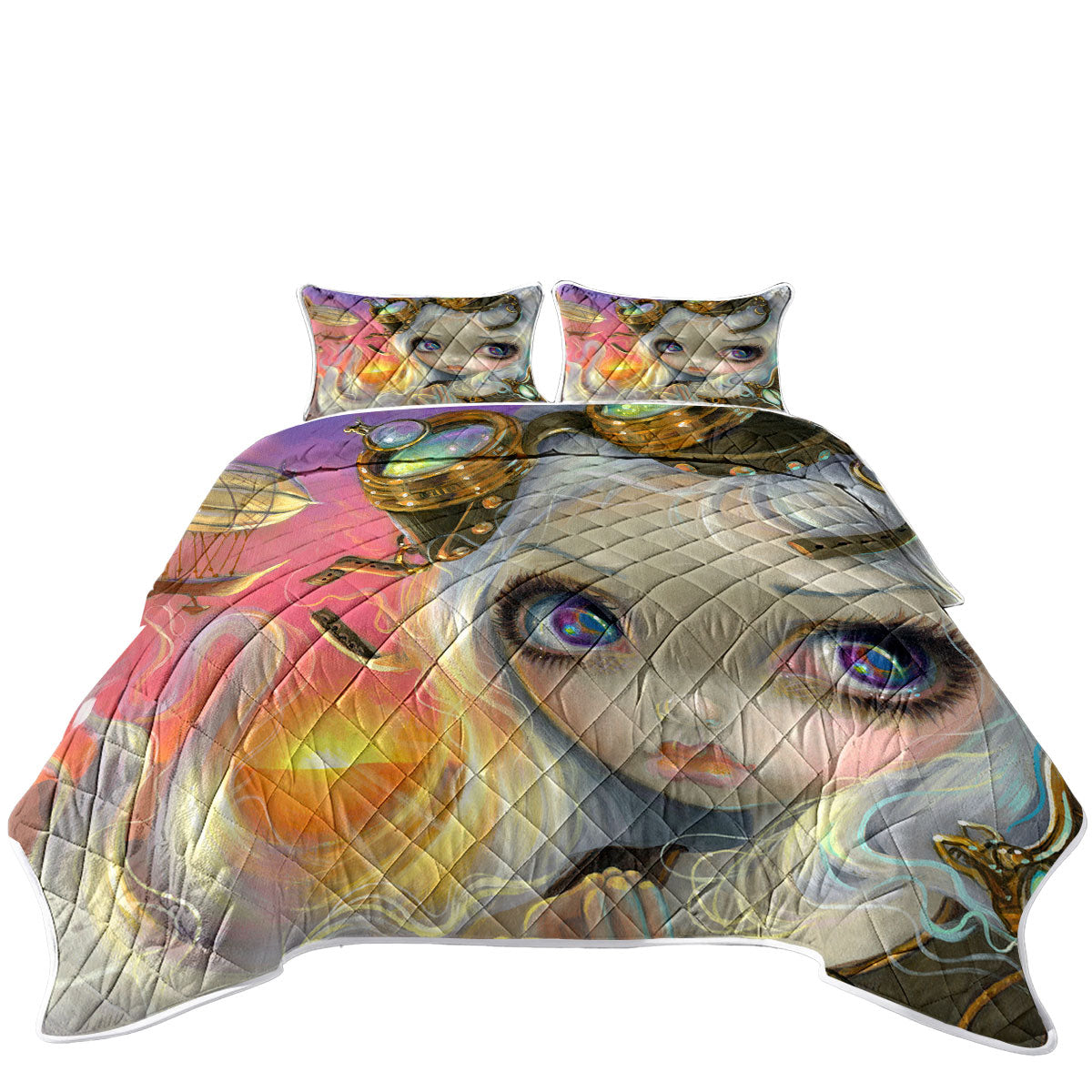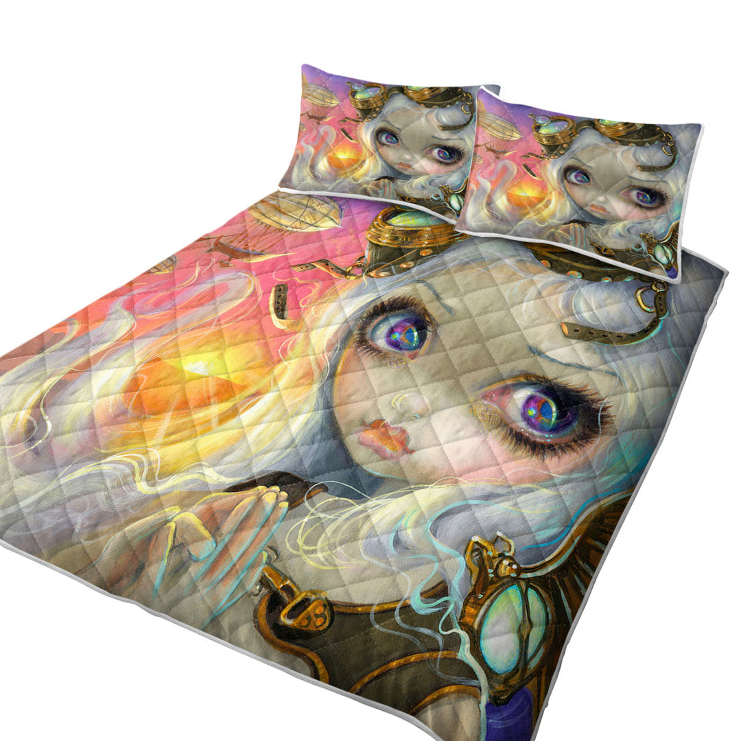 Windswept Lovely Steampunk Beautiful Girl at Sunset Quilt