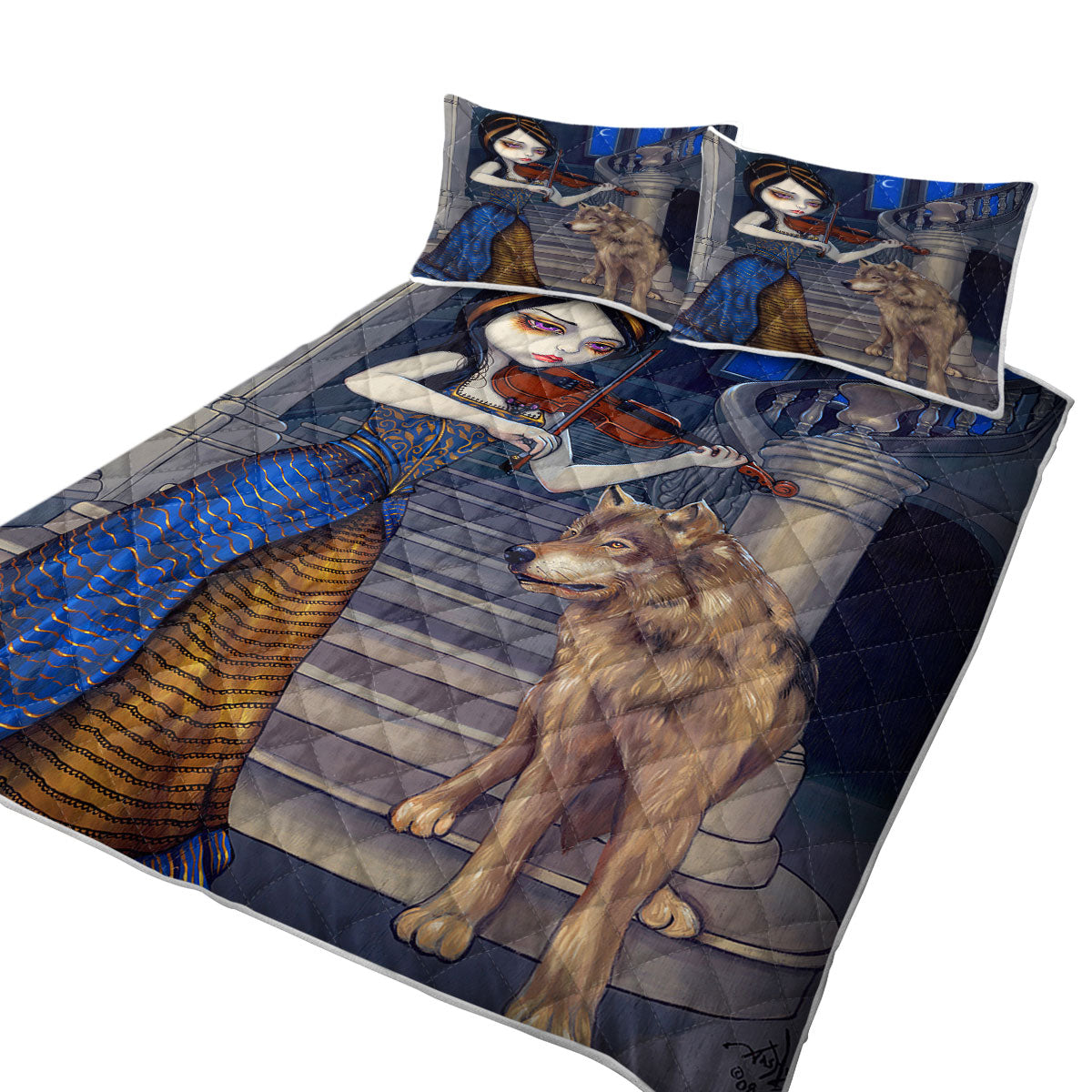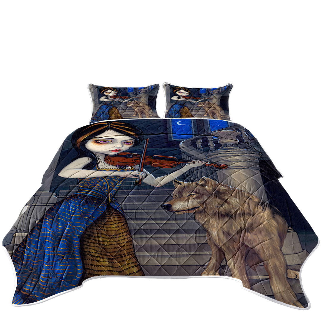 Wolf Song Gothic Beautiful Girl Playing a Violin Quilt