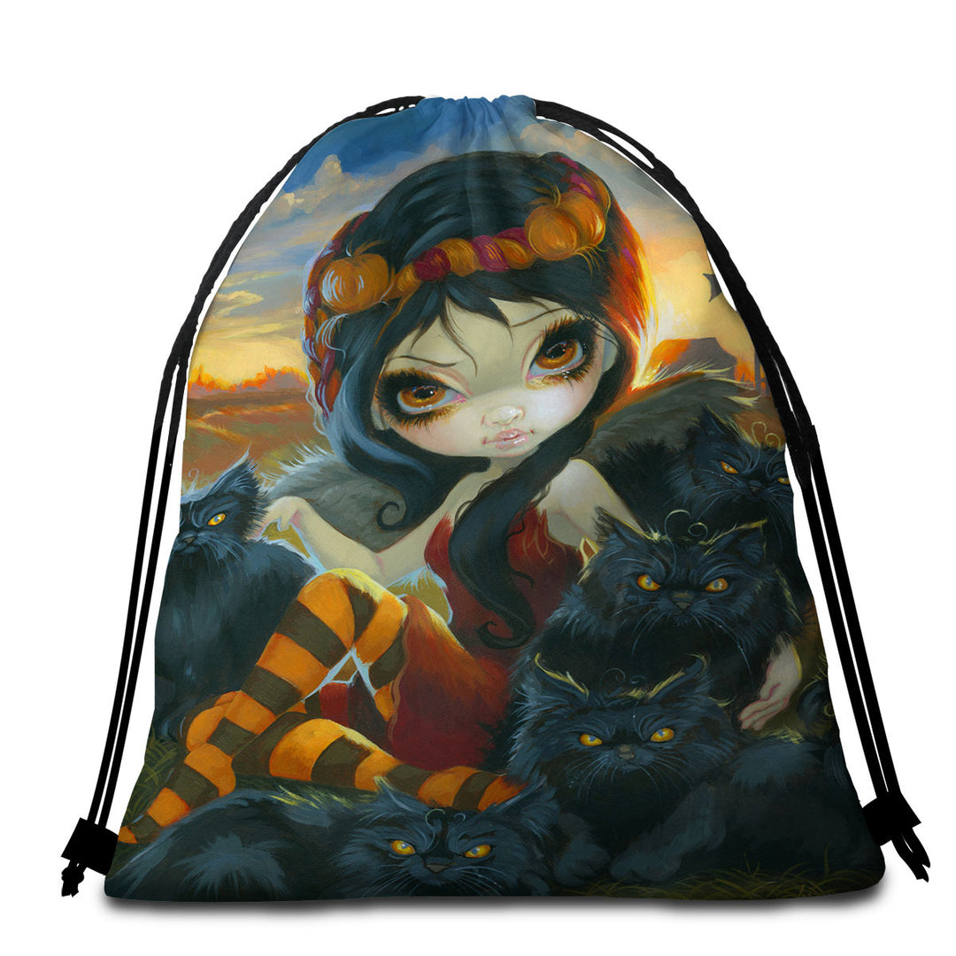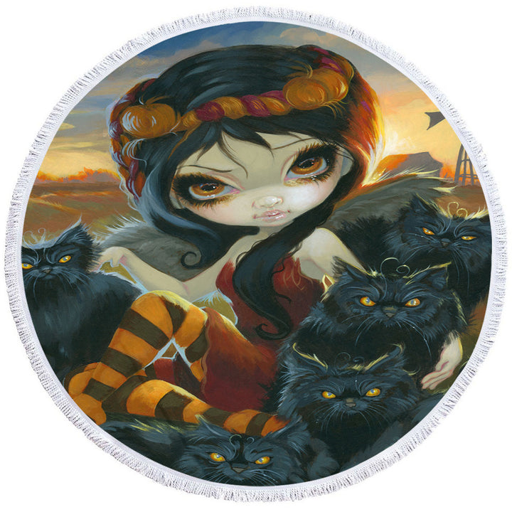 Autumn Kitties and the Dark Angelic Fairy Round Beach Towel