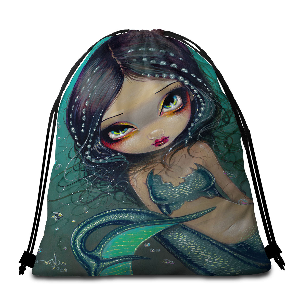 Beautiful Big Eyed Pearl Swirl Mermaid Round Beach Towel