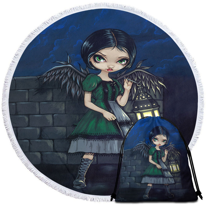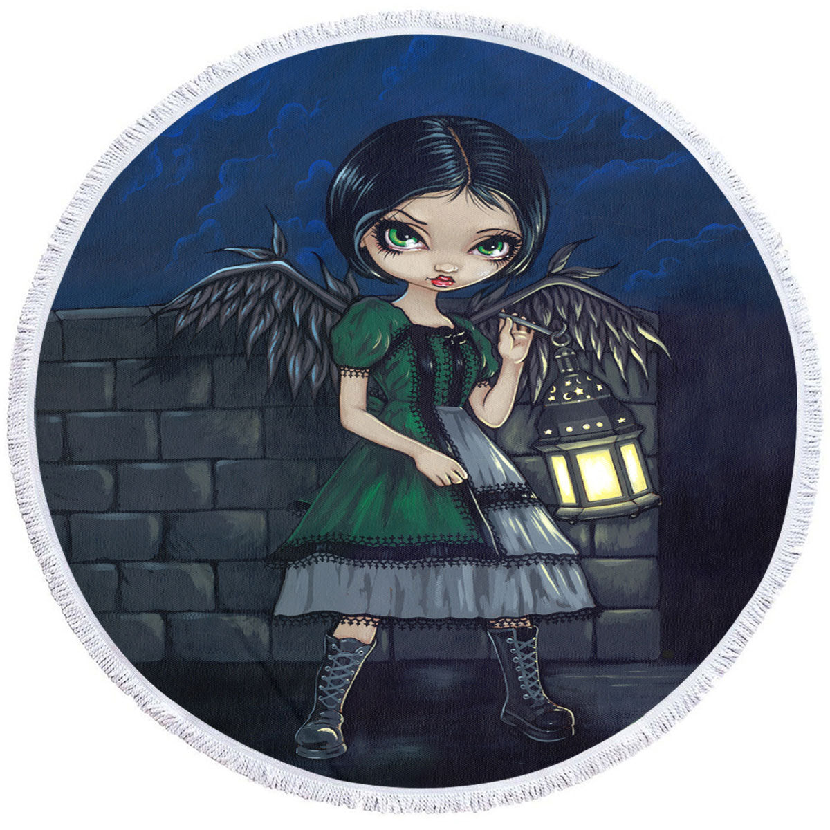 Big Eyed Beautiful Angel Lighting the Way Round Beach Towel