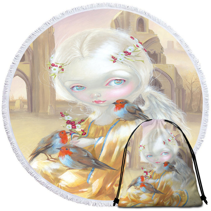 Birds and Angel at Glastonbury Abbey Round Beach Towel