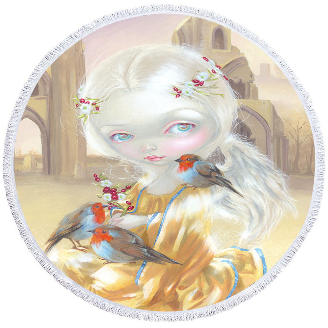 Unique printed round beach towels can suit adults, kids, women, men, girls, and boys. We offer two round beach towel sizes: 59 inches (diameter) and 39 inches (diameter).