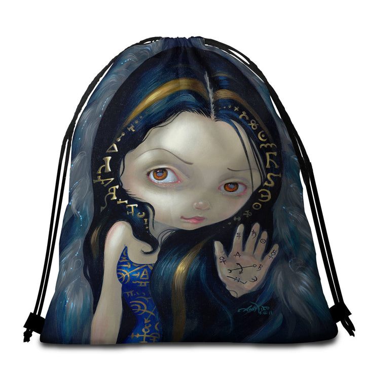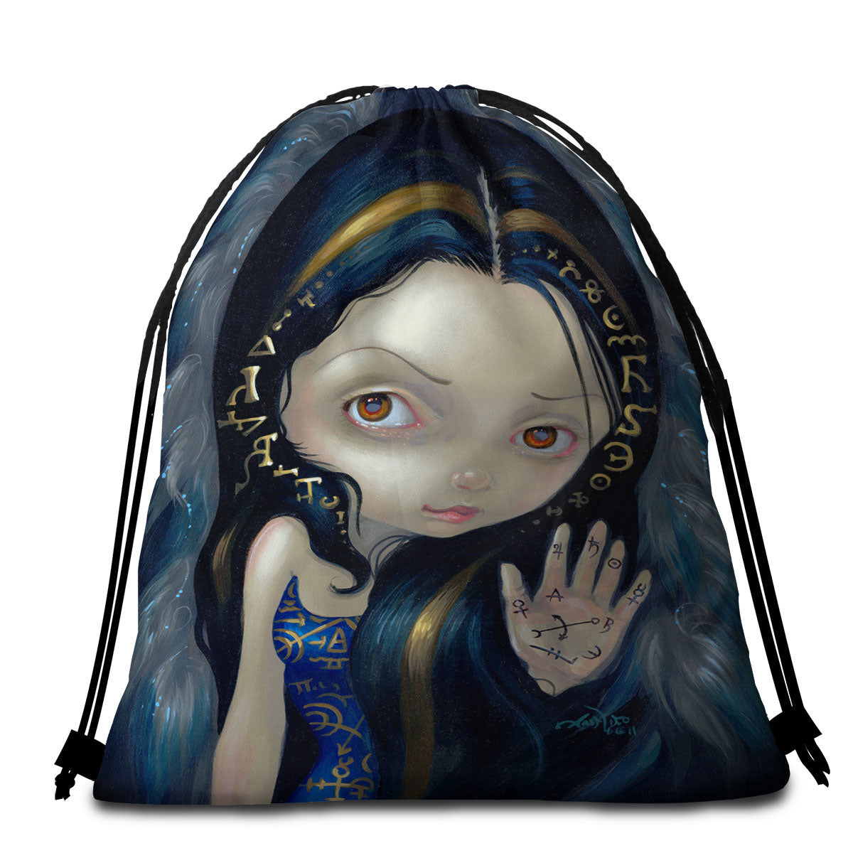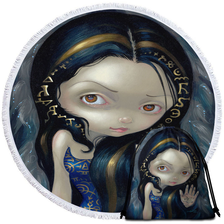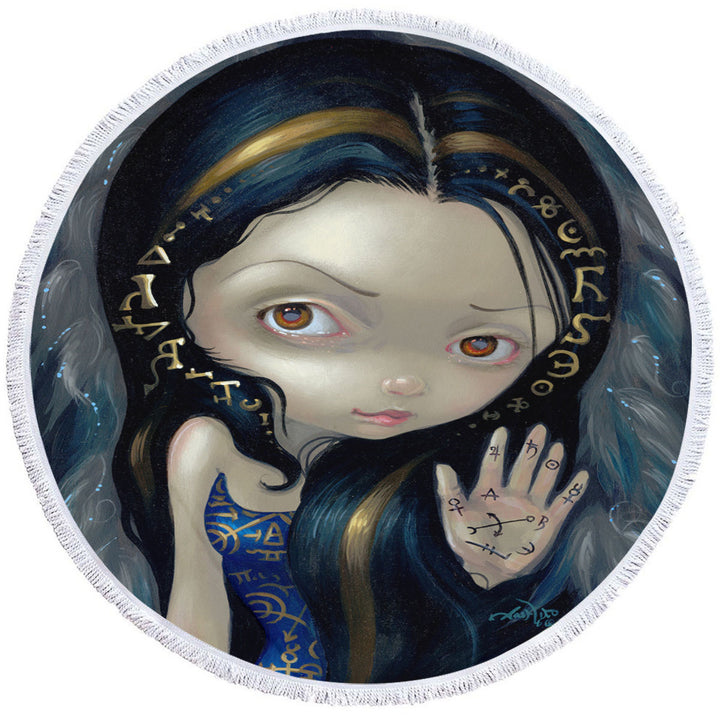 Black Hair Divine Spirit Alchemical Angel Round Beach Towel