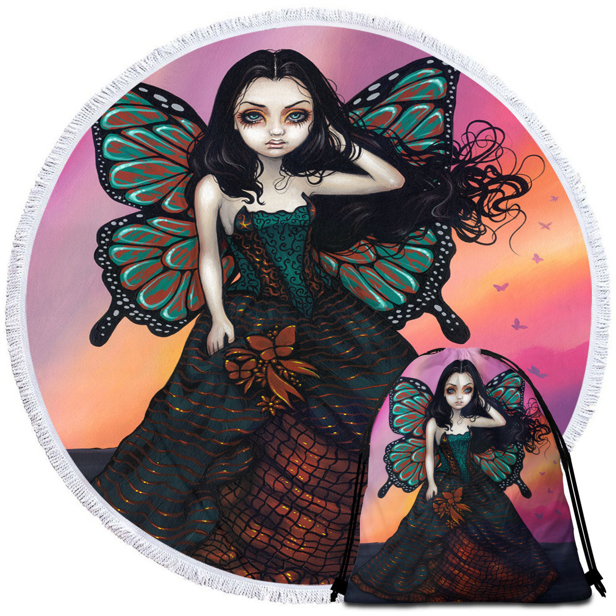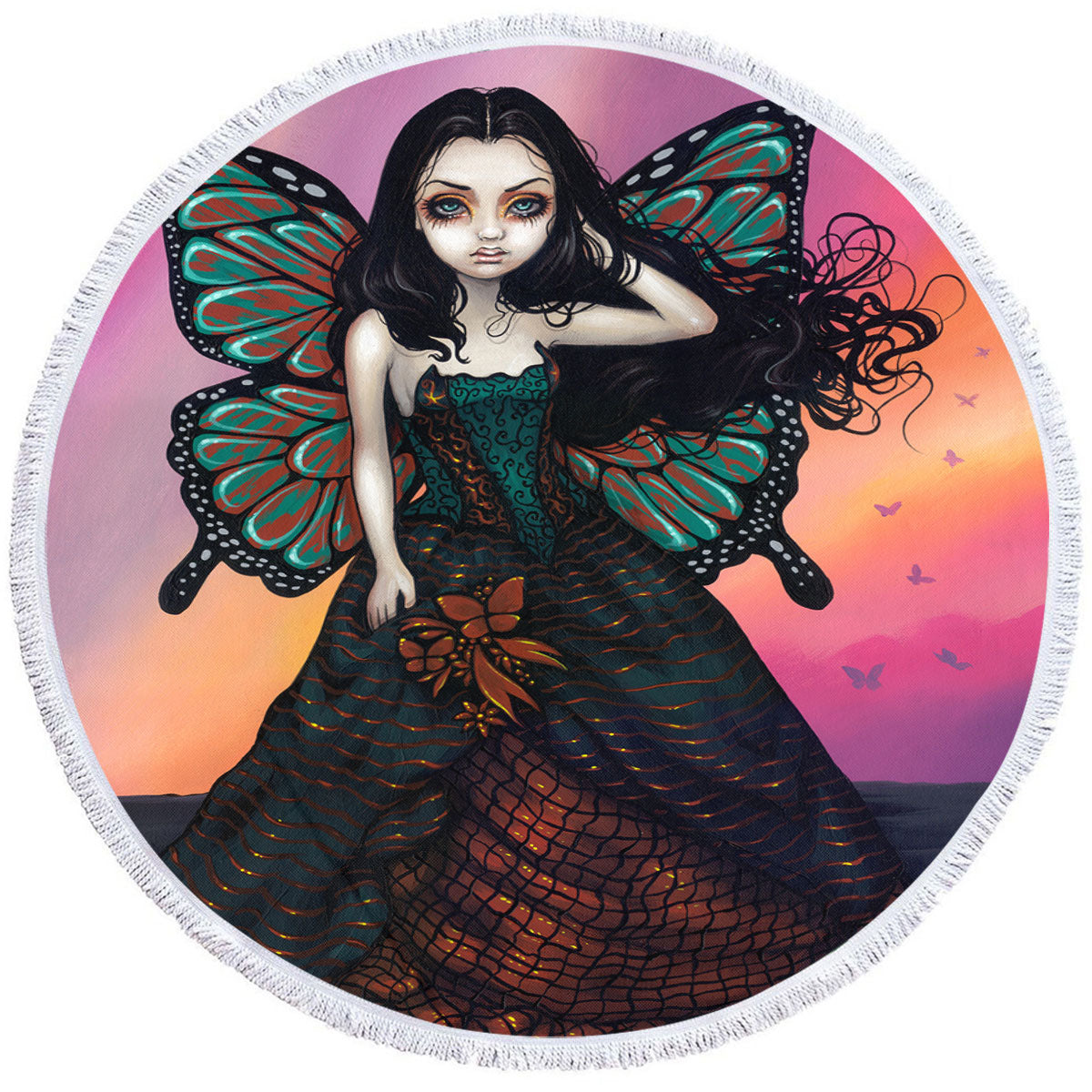 Butterfly Sunset Fairy in a Glorious Dress Round Beach Towel