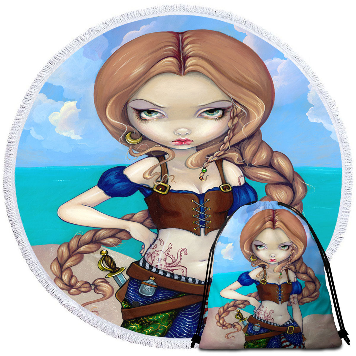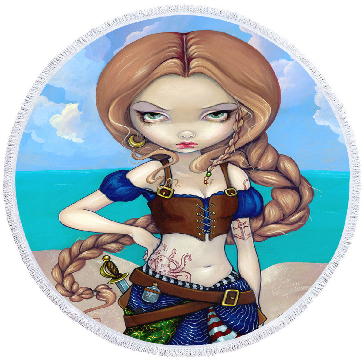 Captain Molly Morgan Beautiful Pirate Girl Round Beach Towel