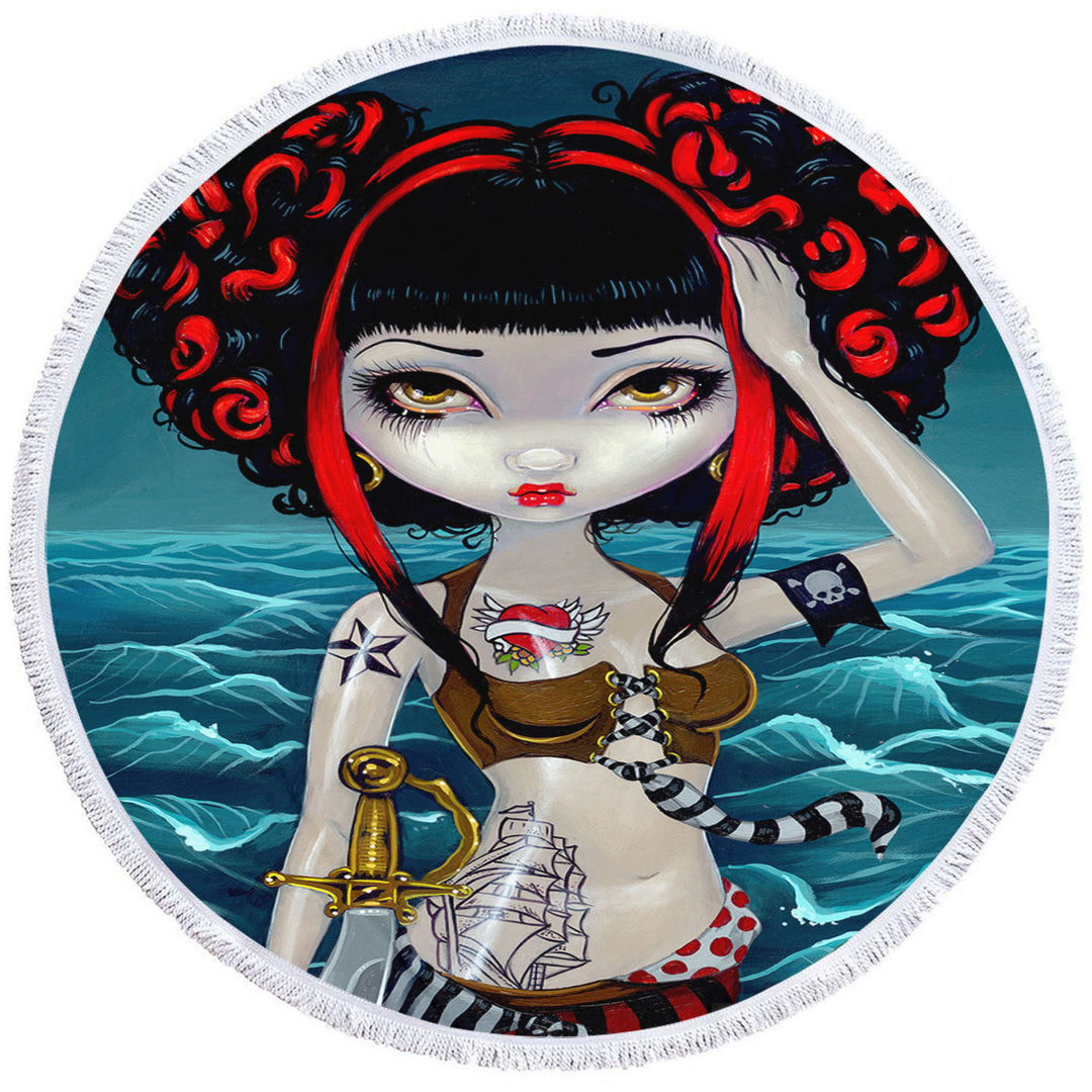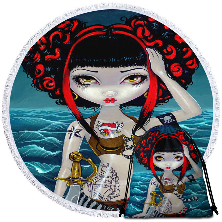 Cool Beach Towels Painting Pretty Pirate Polly Tough Girl
