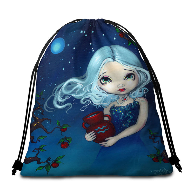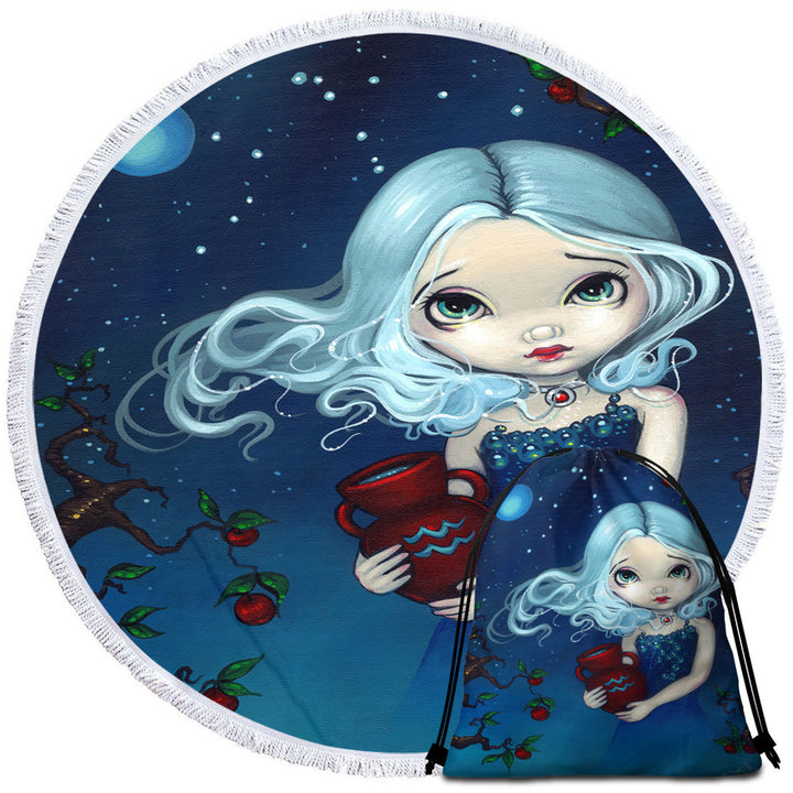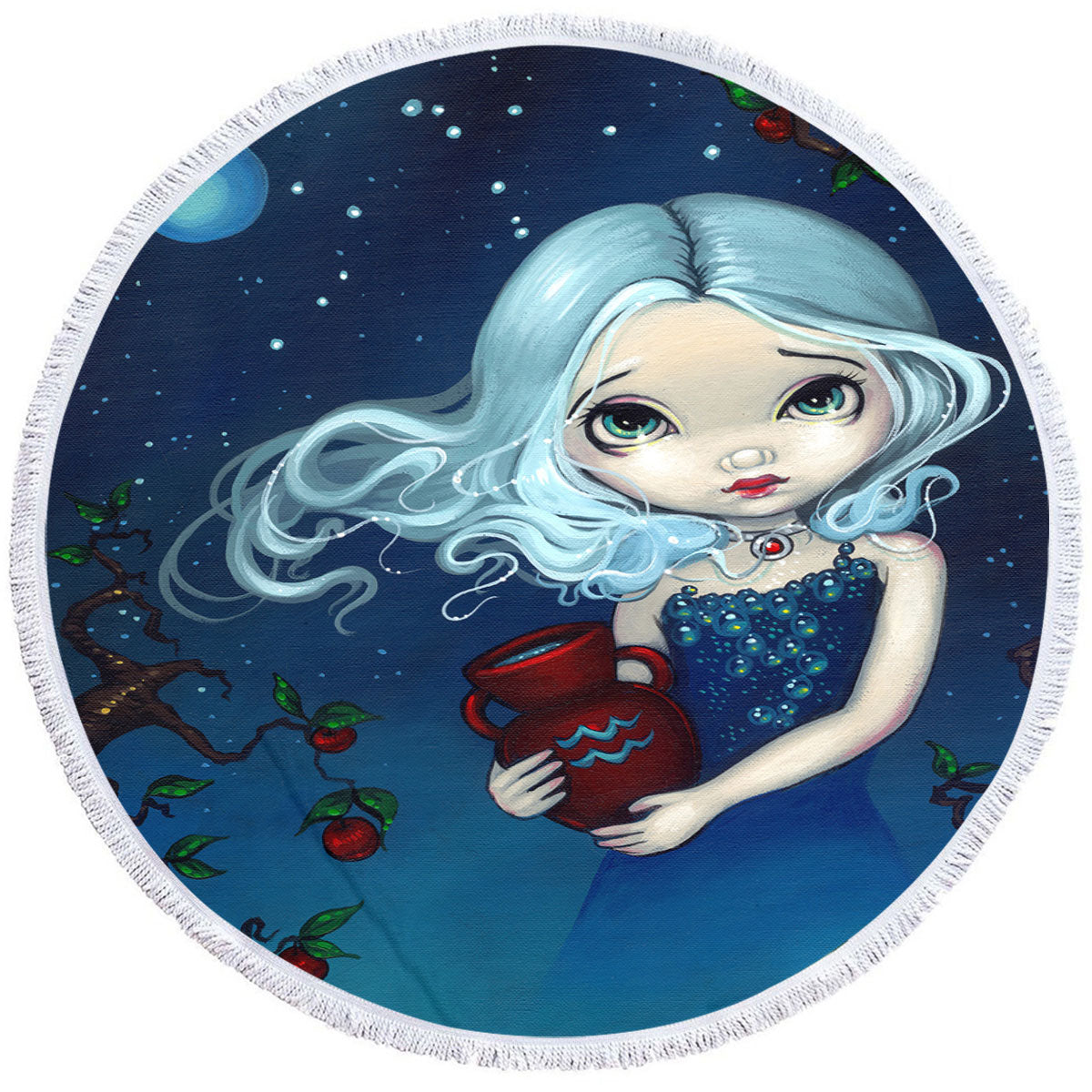 Cool Zodiac Art Aquarius Night Girl Round Beach Towel