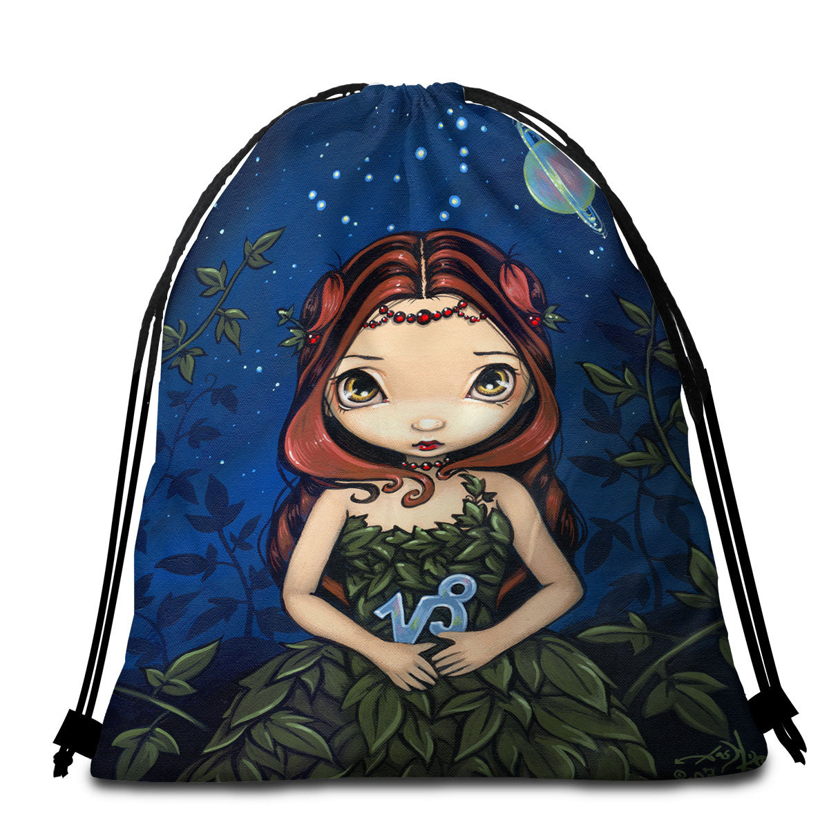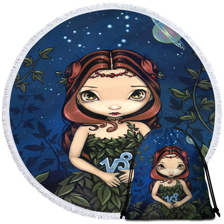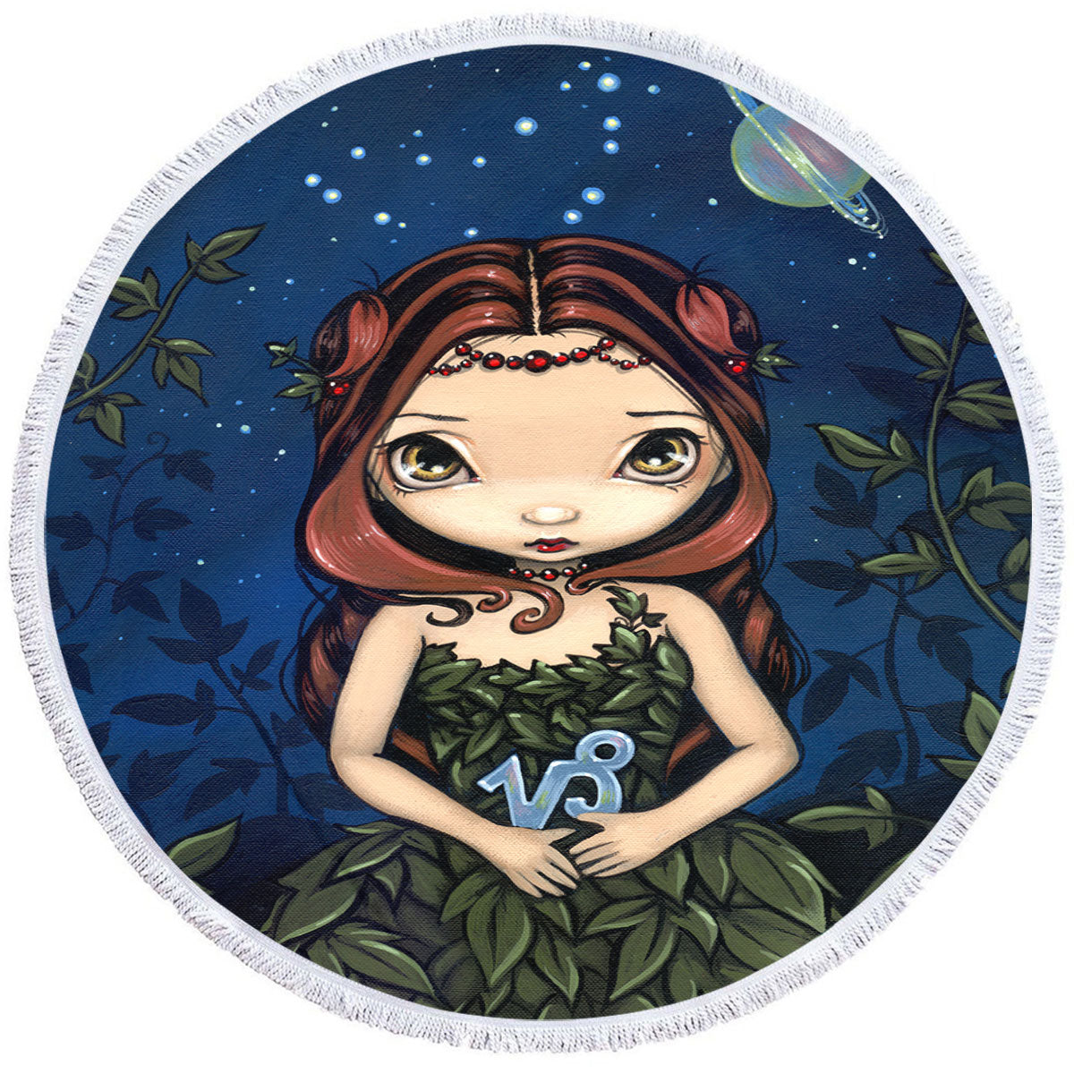 Cool Zodiac Art Capricorn Night Girl Round Beach Towel
