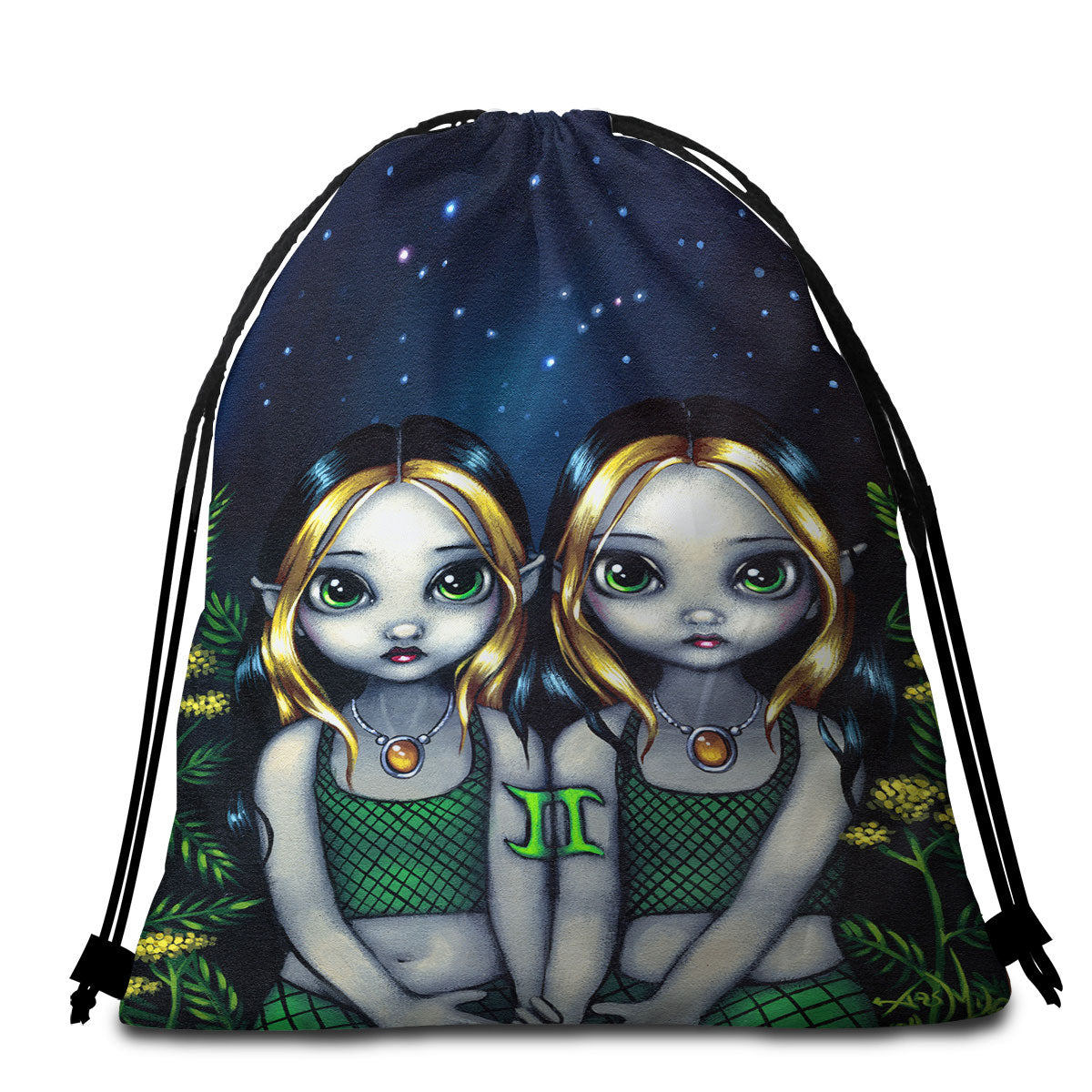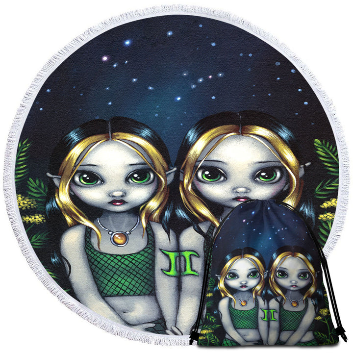 Cool Zodiac Art Gemini Night Elf Girls Round Beach Towel