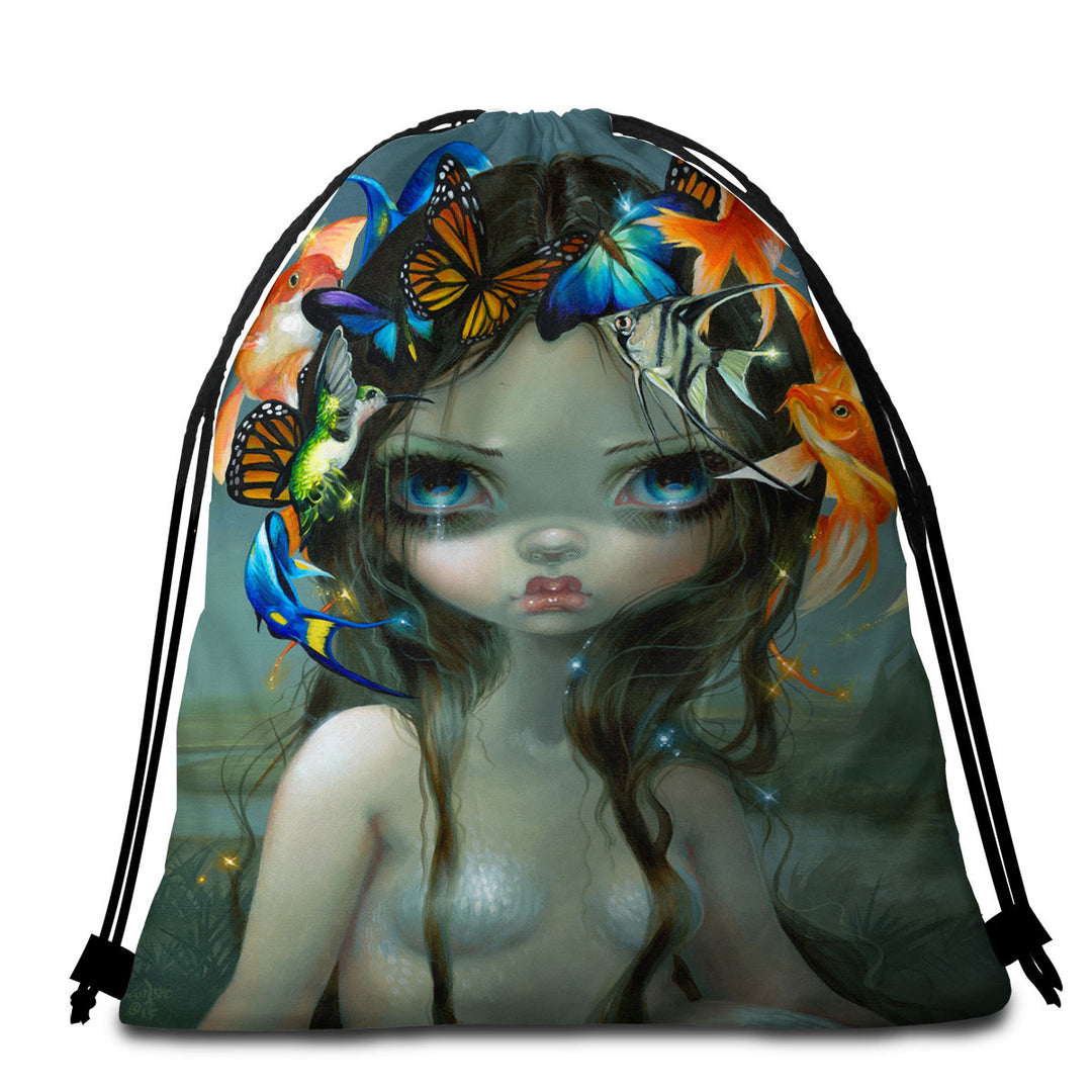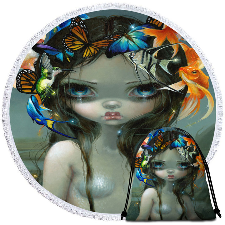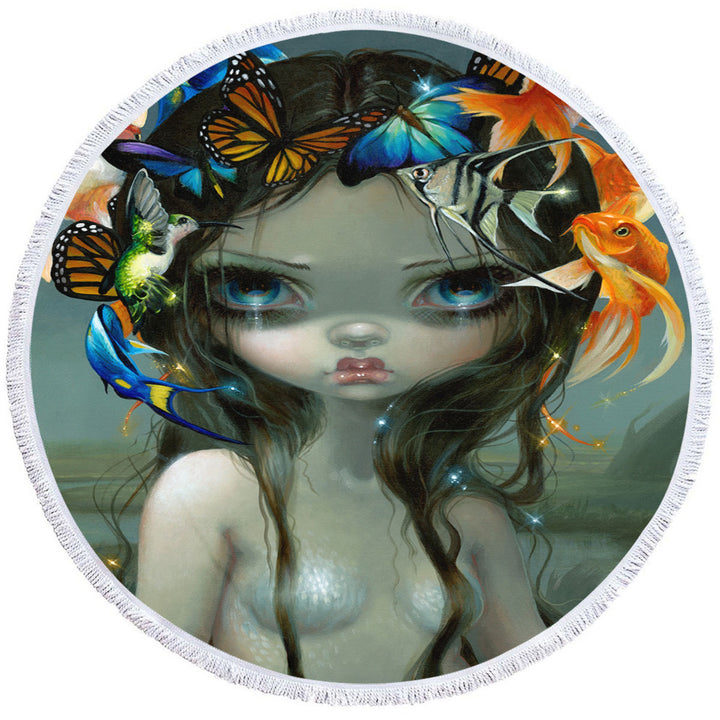 Crown of Air and Water Beautiful Mermaid Round Beach Towel