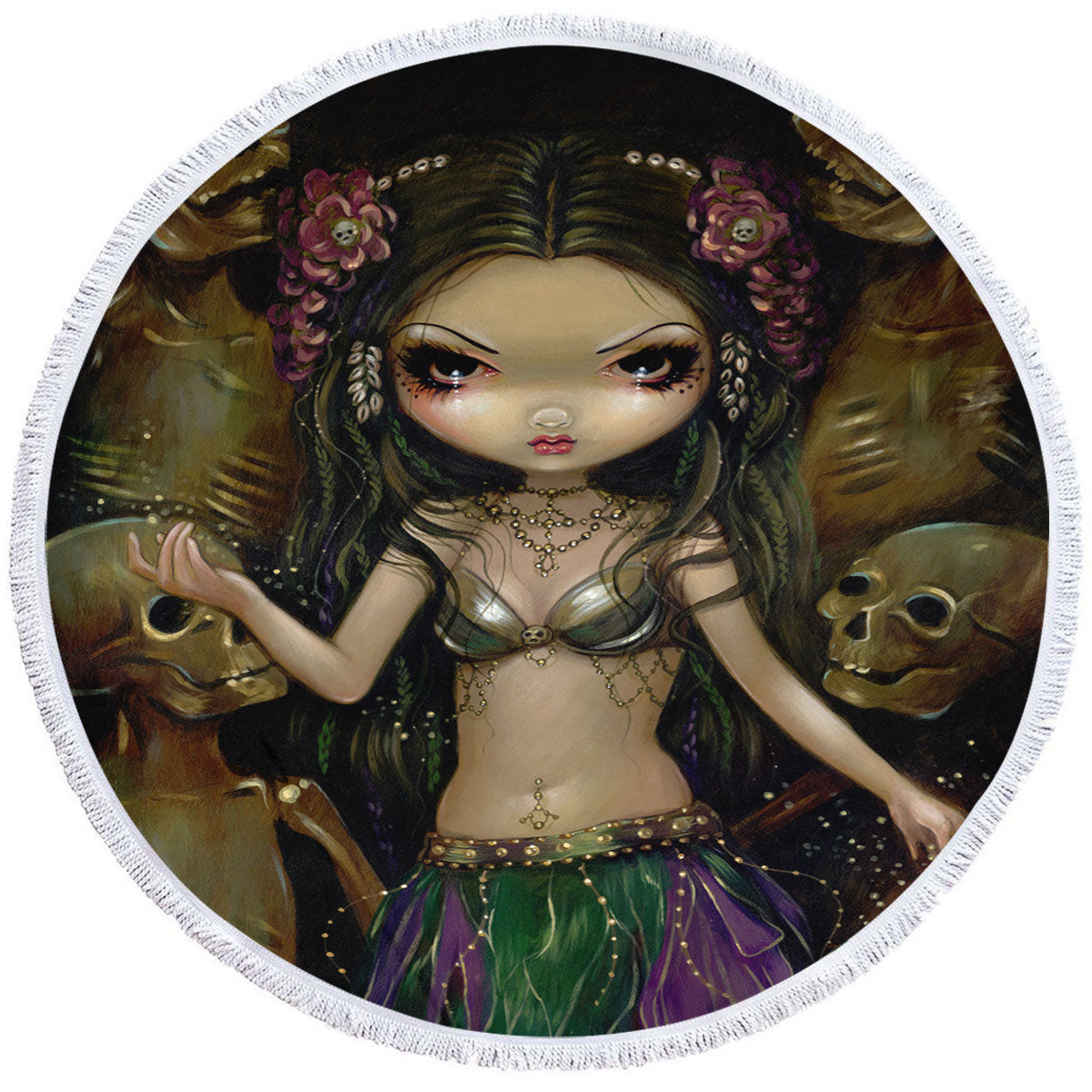 Danse Macabre Tribal Fusion Girl and Skeletons Round Beach Towel