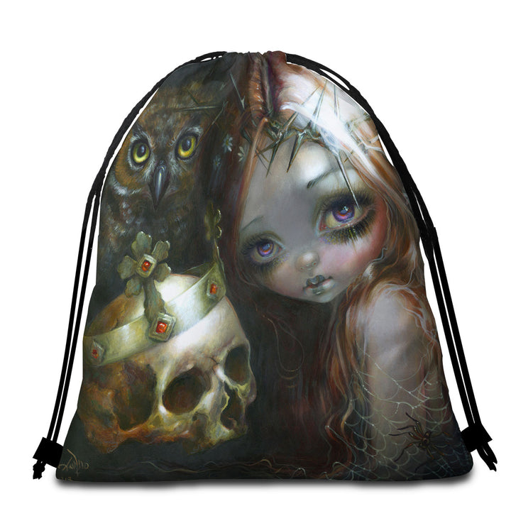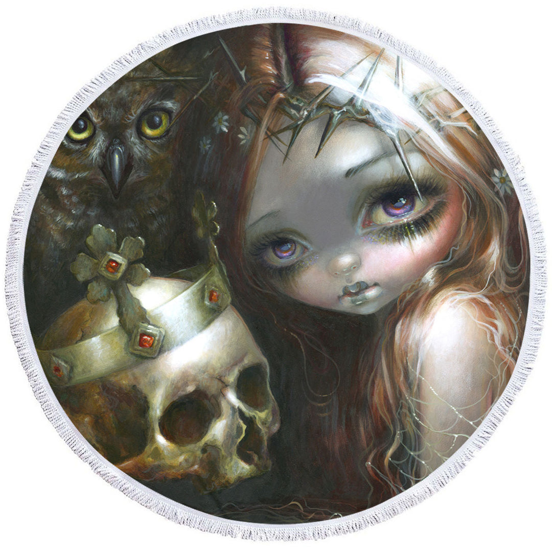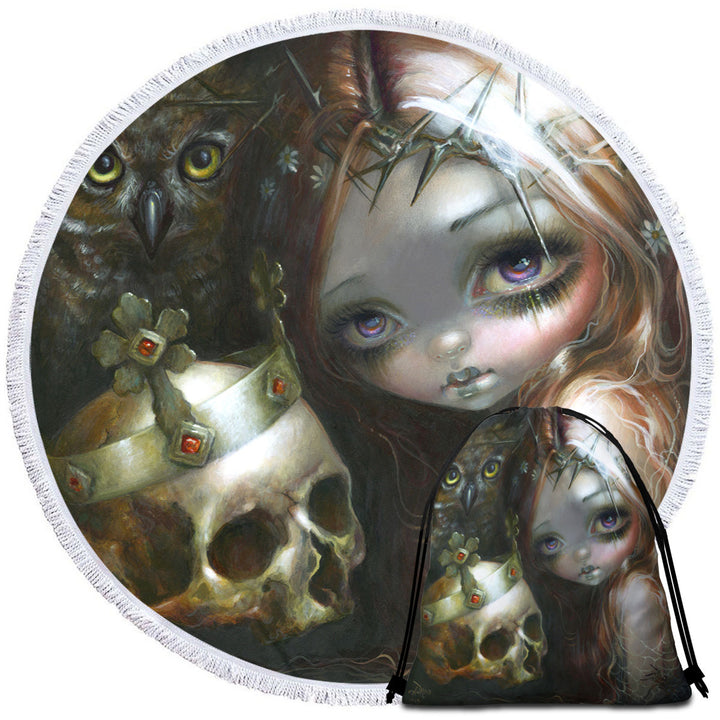 Dark Art Empire of Dirt Girl and King Skull Round Beach Towel