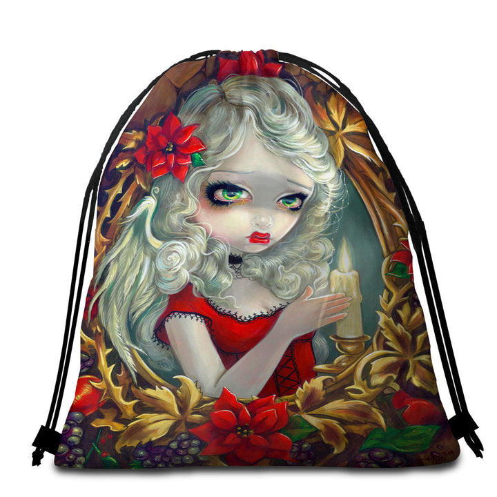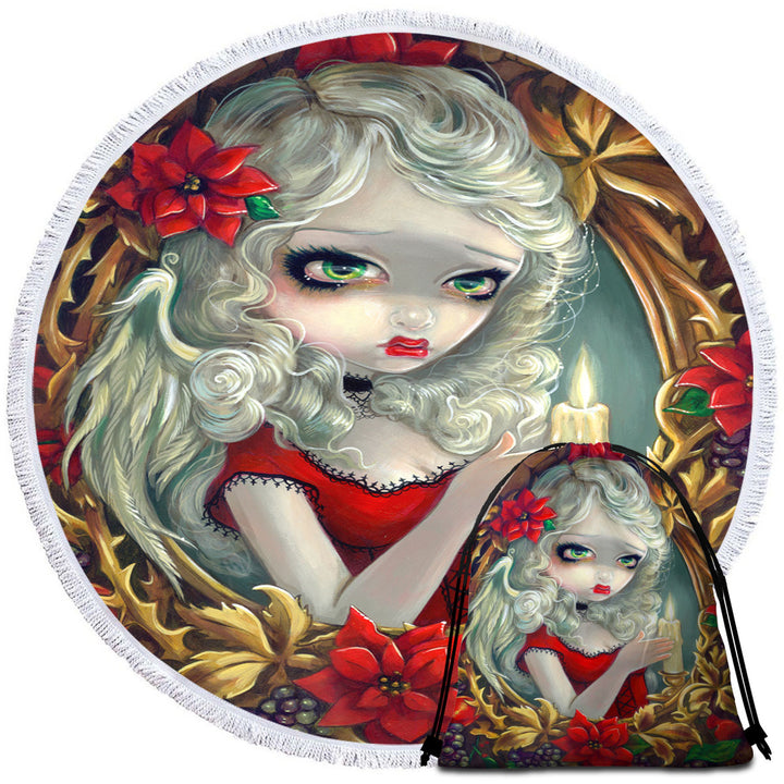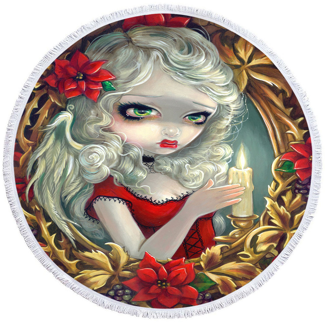 White Haired Beautiful Girl Christmas Candle Round Beach Towel